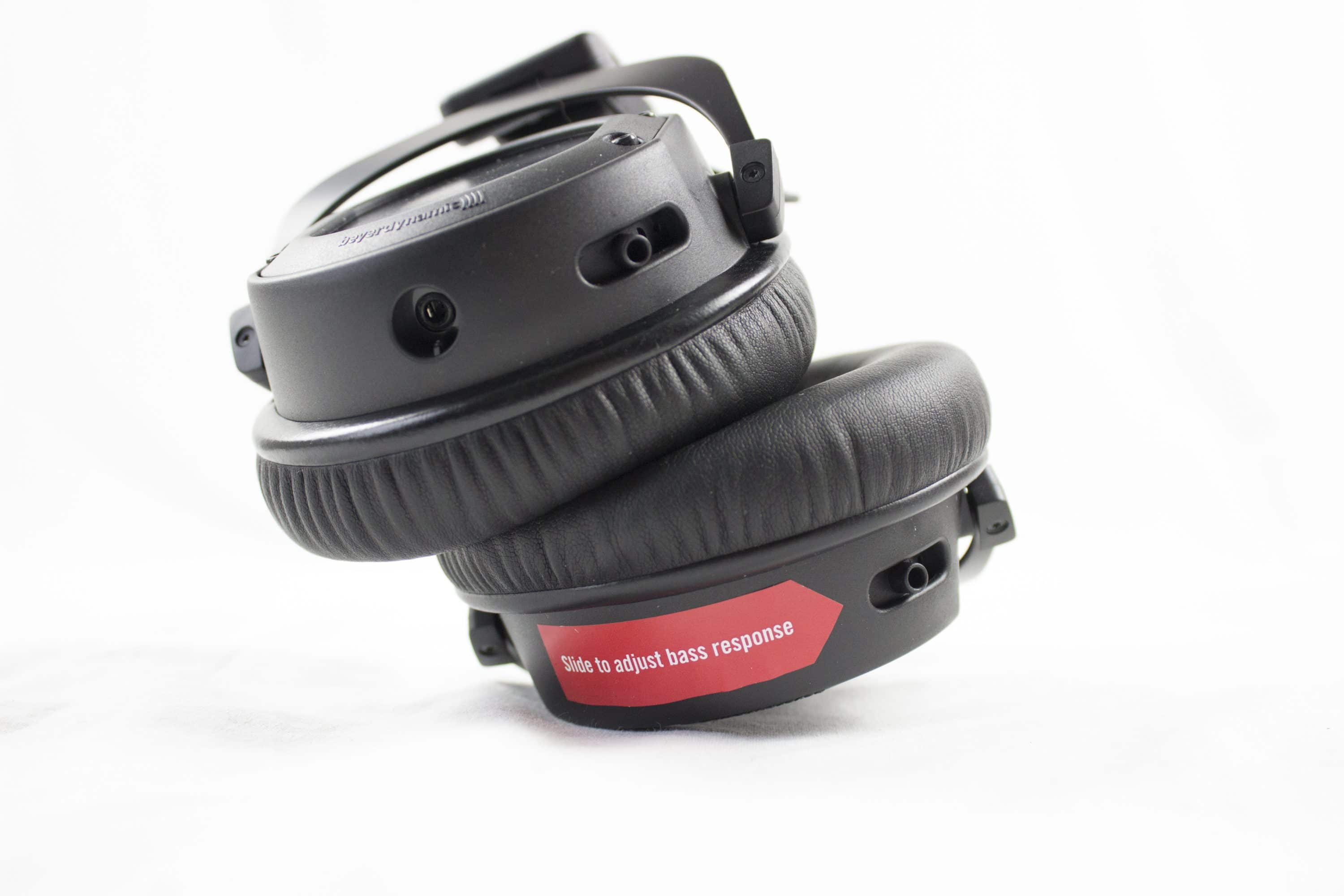 Die Verarbeitung des beyerdynamic Custom Game ist sehr gut. Bei dem Custom Game kann man ebenfalls die Höhe verstellen wie es auch bei anderen Headsets üblich ist. Jedoch dachte ich zuerst, dass dies nicht möglich sei, da es sehr schwer war, das Headset größer zu stellen. Des Weiteren hat das Headset einen Bügel, der sehr angenehm auf dem Kopf liegt. Auch nach längeren Gaming-Sessions konnte ich keine Druckschmerzen oder Schweiß feststellen. An den Ohrmuscheln könnt ihr die Intensität des Basses nach eurem Belieben einstellen.