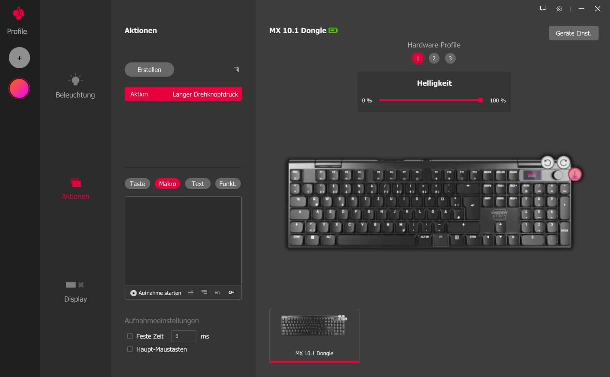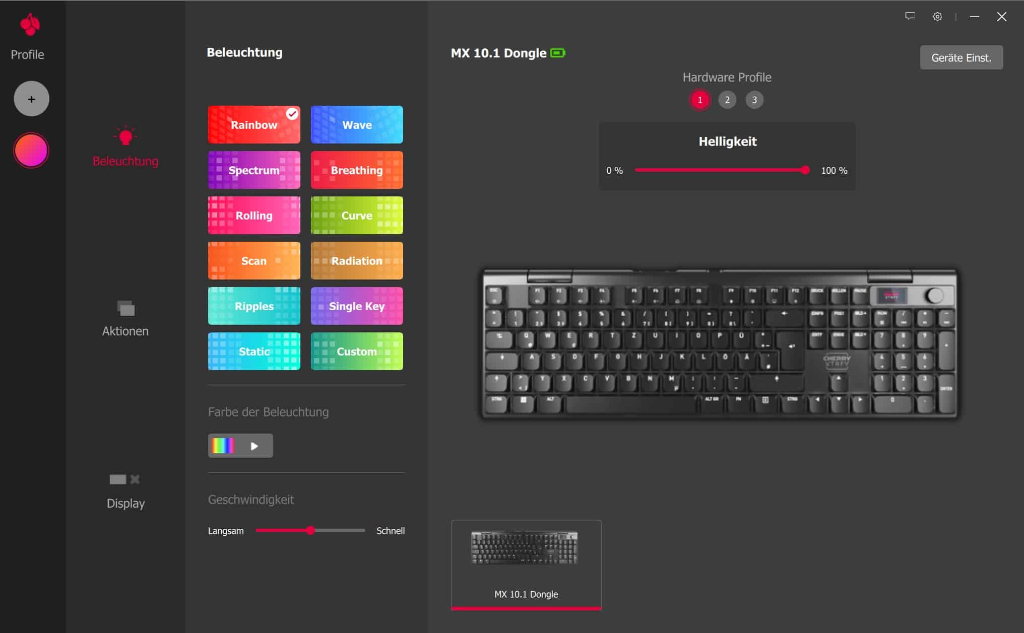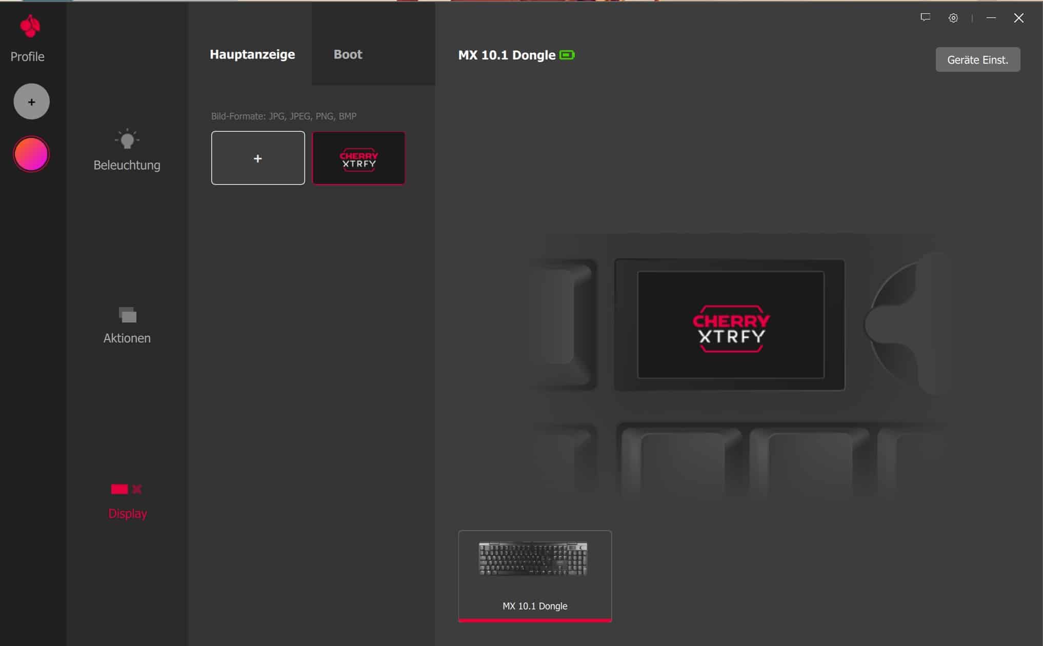 Als Begleit-Software der CHERRY XTRFY MX 10.1 Wireless kommt einmal mehr Cherry Utility zum Einsatz, die ähnlich funktionsarm daherkommt wie im Falle anderer Tastaturen des Herstellers.