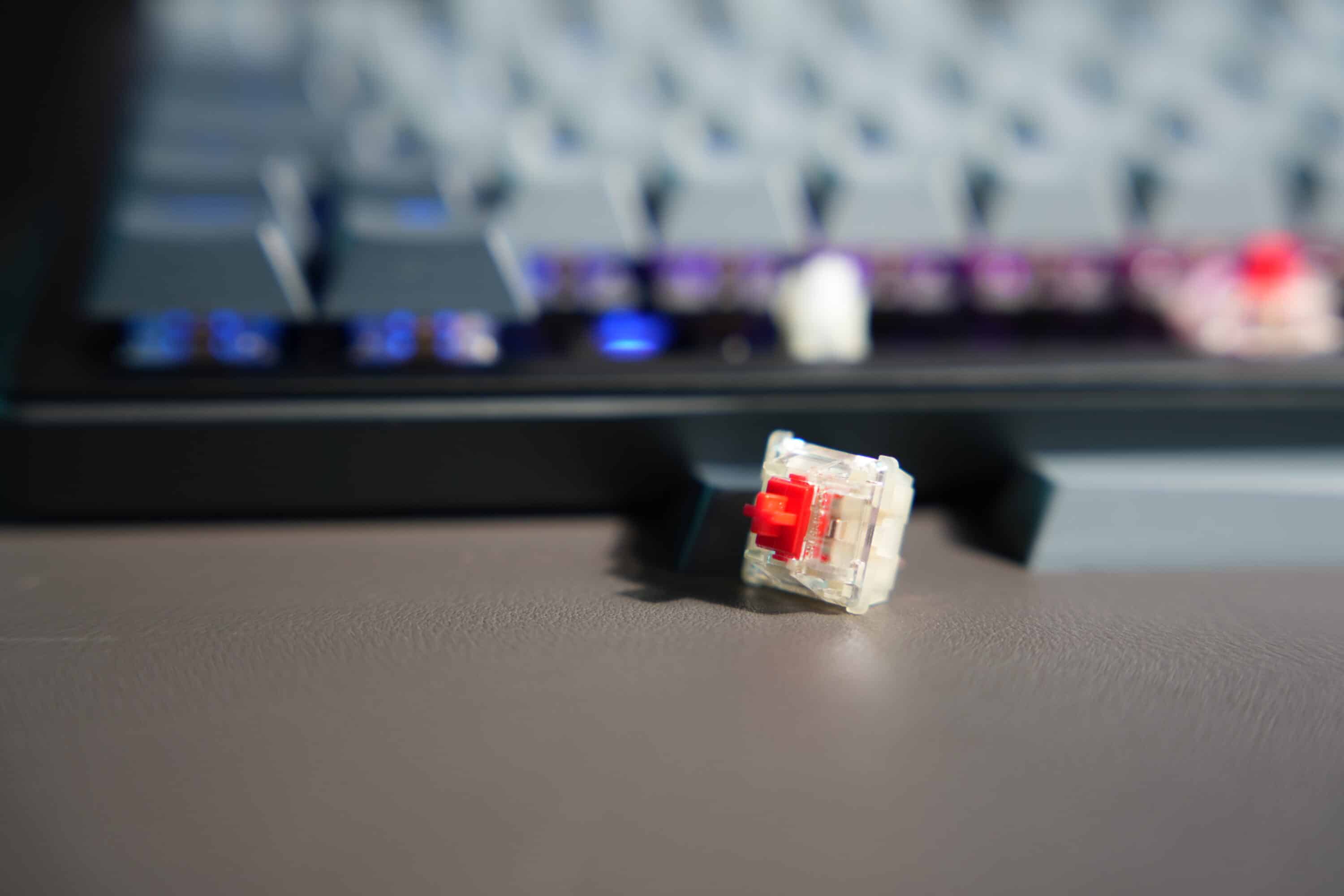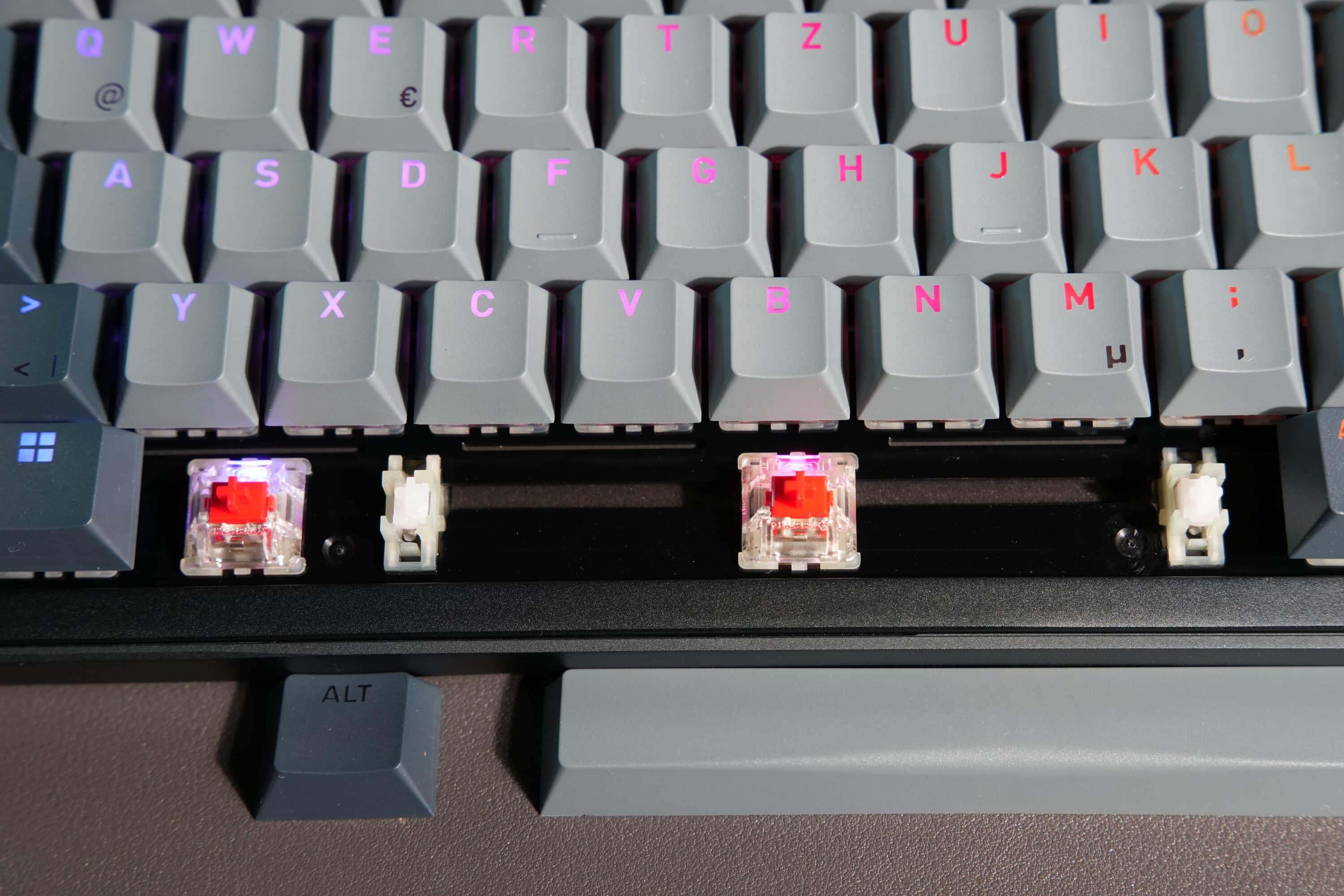 CHERRY-typisch lassen sich dabei sowohl die Tastenkappen als auch die Switches austauschen. Werksseitig verbaut sind dabei die linearen CHERRY MX2A RED Switches, die ein leichtgängiges und direktes Tippgefühl liefern. Sie wwarten mit einer Auslösekraft von 45 cN auf und bieten einen Vorlaufweg von 2,0 mm. Zudem sind sie werksseitig bereits vorgeschmiert, was ein überzeugendes Feedback garantiert. Wer mag kann die Schalter aber dank Hot-Swap-Funktionalität einfach ersetzen.