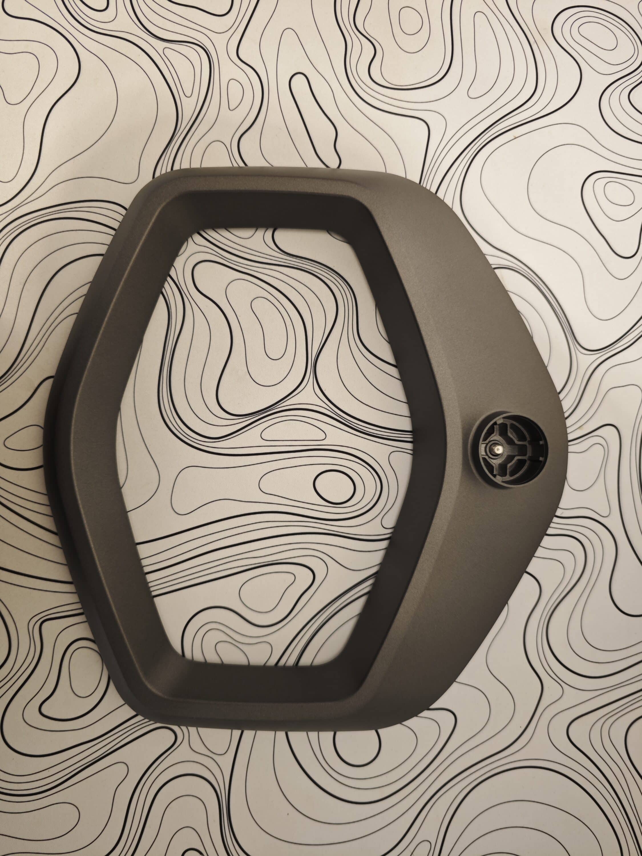 Lediglich das lilafarb reflektierende Herstellerlogo an der Front markiert einen Farbakzent zum ansonsten silbergrau gehaltenen Monitor. Der wartet dafür mit einem äußerst robusten Metall-Standfuß auf, der mit seiner Polygonform für einen sicheren Halt auf dem Schreibtisch sorgt.