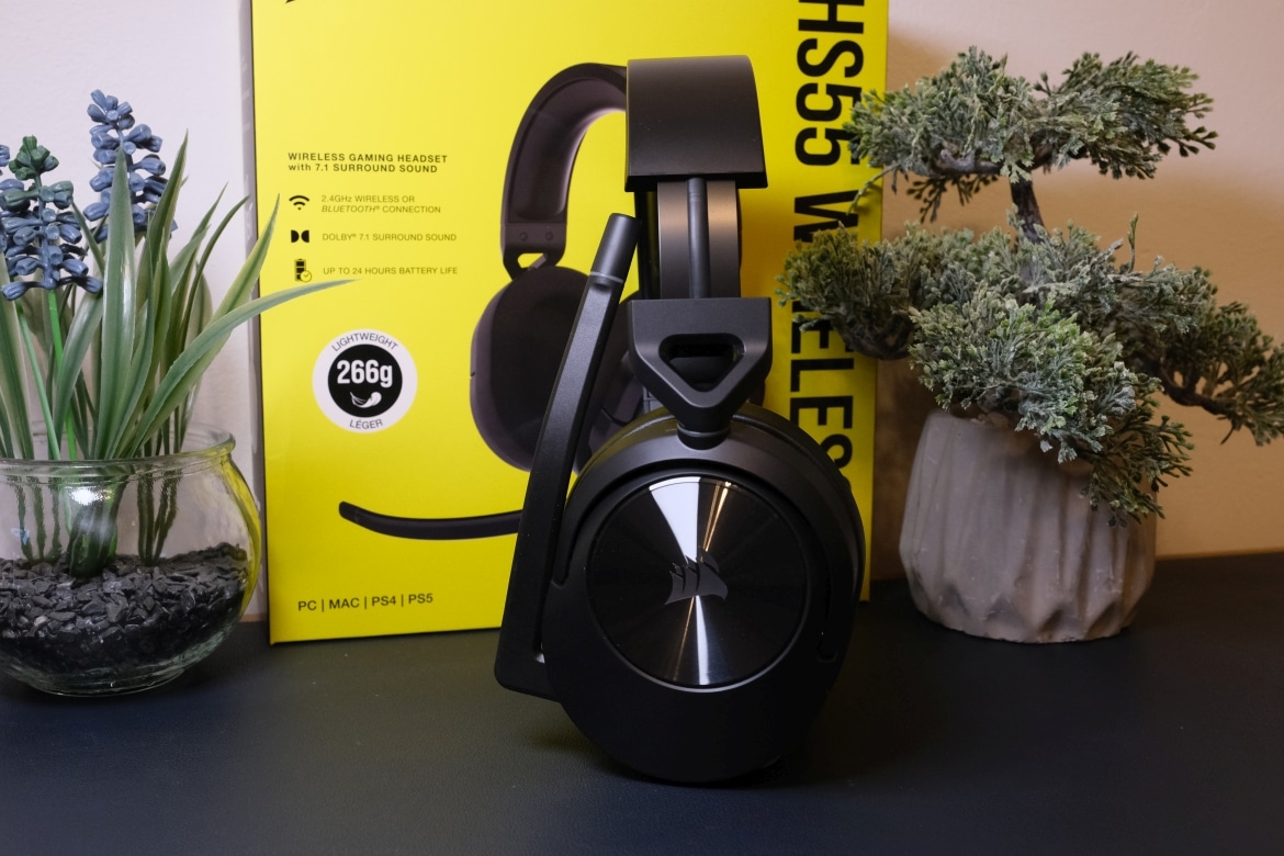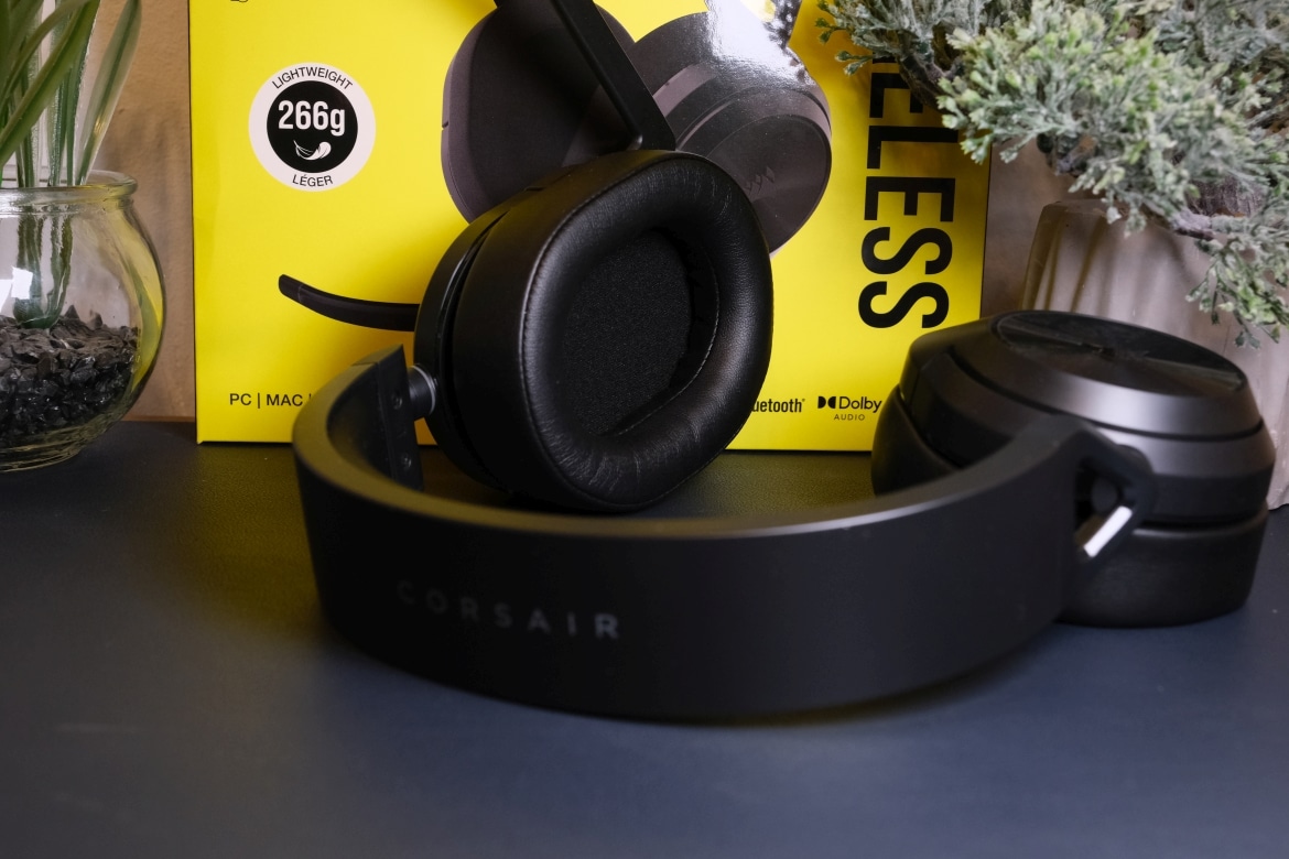 Wer das Corsair HS55 Wireless zum ersten Mal in die Hand nimmt, wird überrascht sein, wie leicht das Gaming-Headset eigentlich ist. Das Gewicht liegt bei lediglich 266 Gramm und damit auf Augenhöhe mit dem Core-Modell.