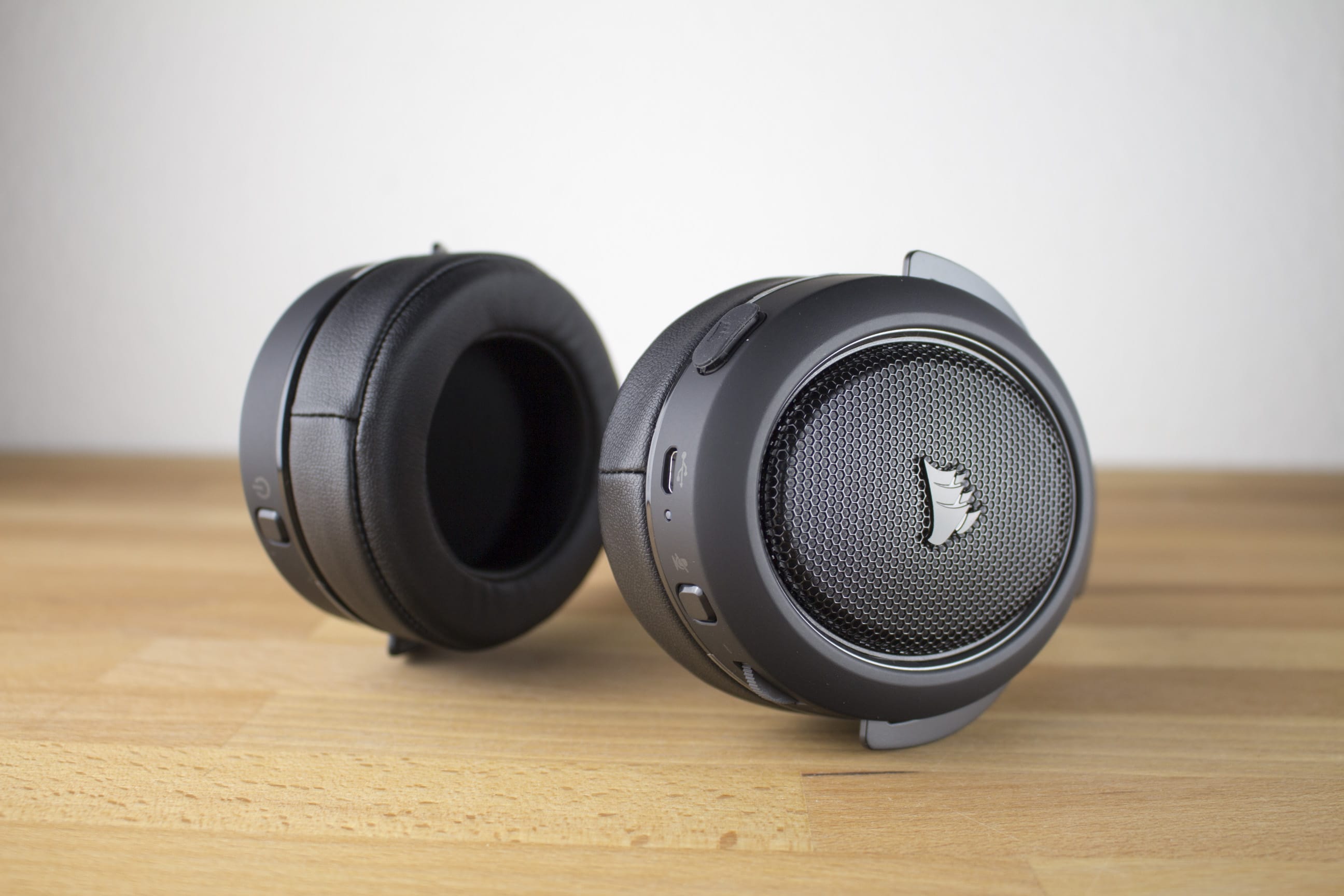 Wie die meisten anderen Headsets ist auch das Corsair HS70 mit zwei 50-mm-Neodymtreibern ausgestattet. Diese sollen für eine gute Soundqualität sorgen – dazu später mehr. Gepolstert sind die Ohrmuscheln mit Memory-Schaum, der die Ohren vollständig umschließt. Die Ohren sind somit weich gepolstert, besonders atmungsaktiv ist die Polsterung jedoch nicht. Bei längeren Sessions muss man also durchaus mal kurz eine Ohrbelüftungspause einlegen.