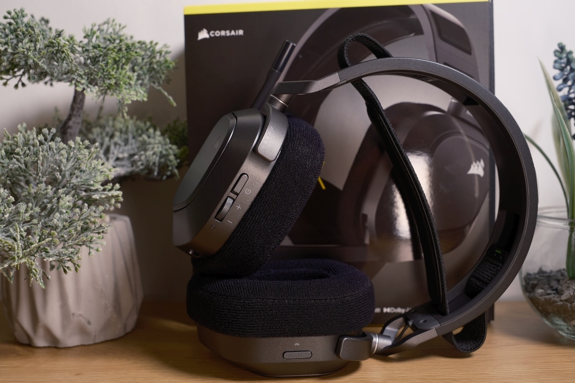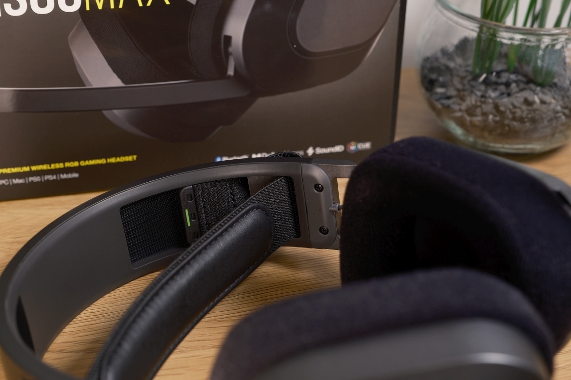 Hinsichtlich der Bedienung gibt sich das Corsair HS80 Max ganz klassisch. An der Rückseite der linken Ohrmuschel sitzen Power-Button und angenehm geriffeltes Lautstärke-Rad. Beiden wohnen zusätzliche Funktionen inne, so kann über den Ein- und Ausschalter zwischen den verschiedenen Wireless-Modi gewechselt werden, während das Lautstärkerad den Wechsel zwischen Equalizer-Einstellungen erlaubt.