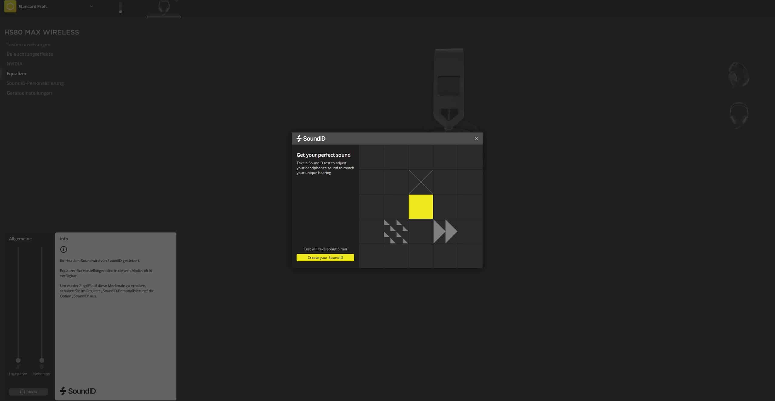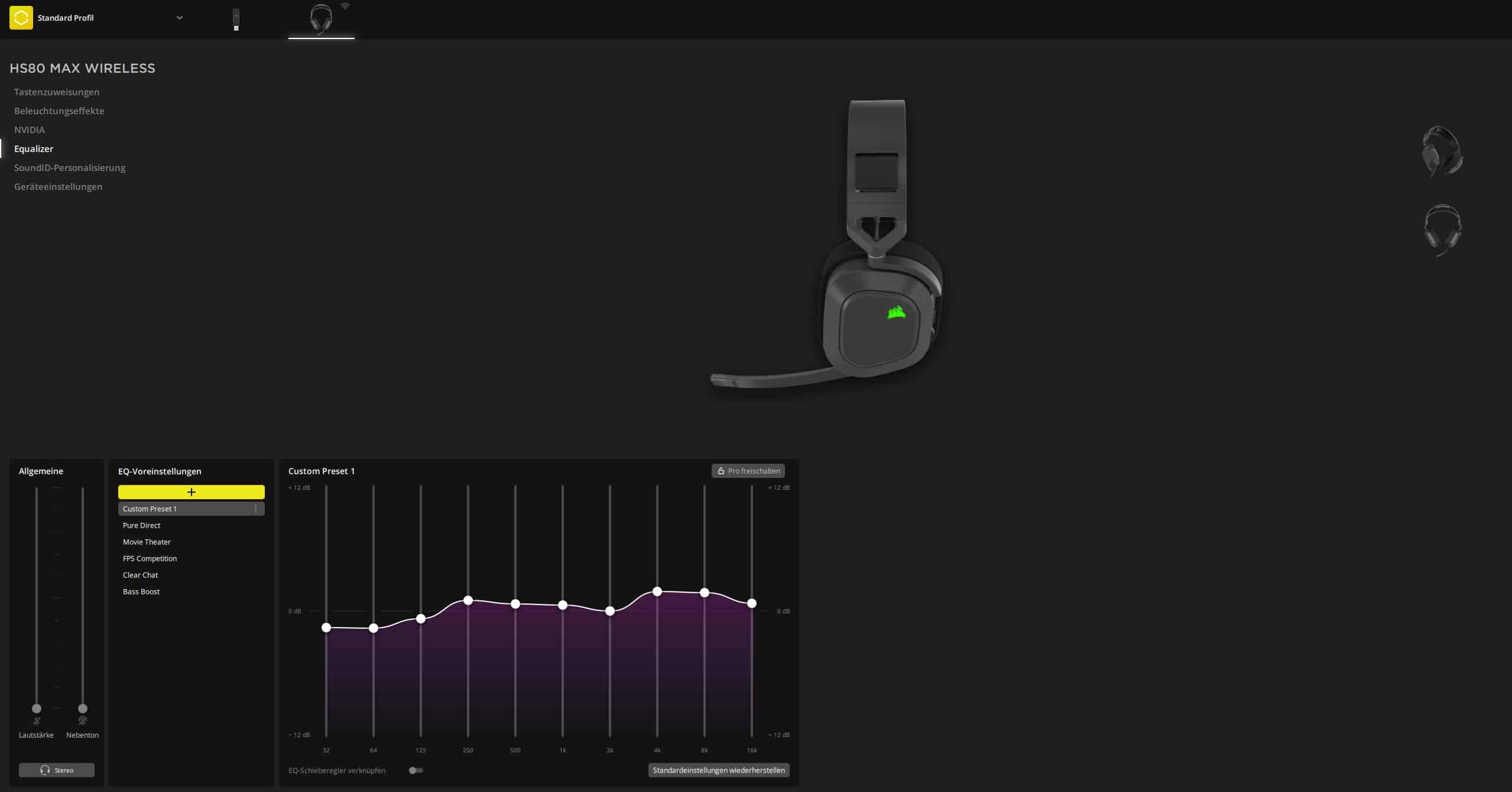 Als Begleit-Software kommt, wie immer, Corsair iCUE zum Einsatz, die mit einem aufgeräumten und klar verständlichen Interface aufwartet. Hier kannst du die Funktion der MFT-Taste anpassen, die RGB-Beleuchtung in verschiedenen Effekten einstellen oder die SoundID-Klangpersonalisierung aktivieren.