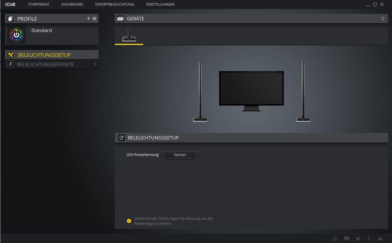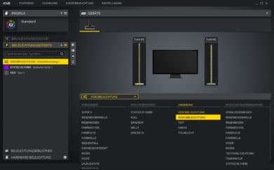 Zur Steuerung nutzt Corsair die hauseigene Software iCUE. In der Software findet man direkt vorgefertigte Lichtprofile, es gibt jedoch auch Möglichkeiten, die LEDs einzeln anzusteuern oder eigene Profile anzulegen.