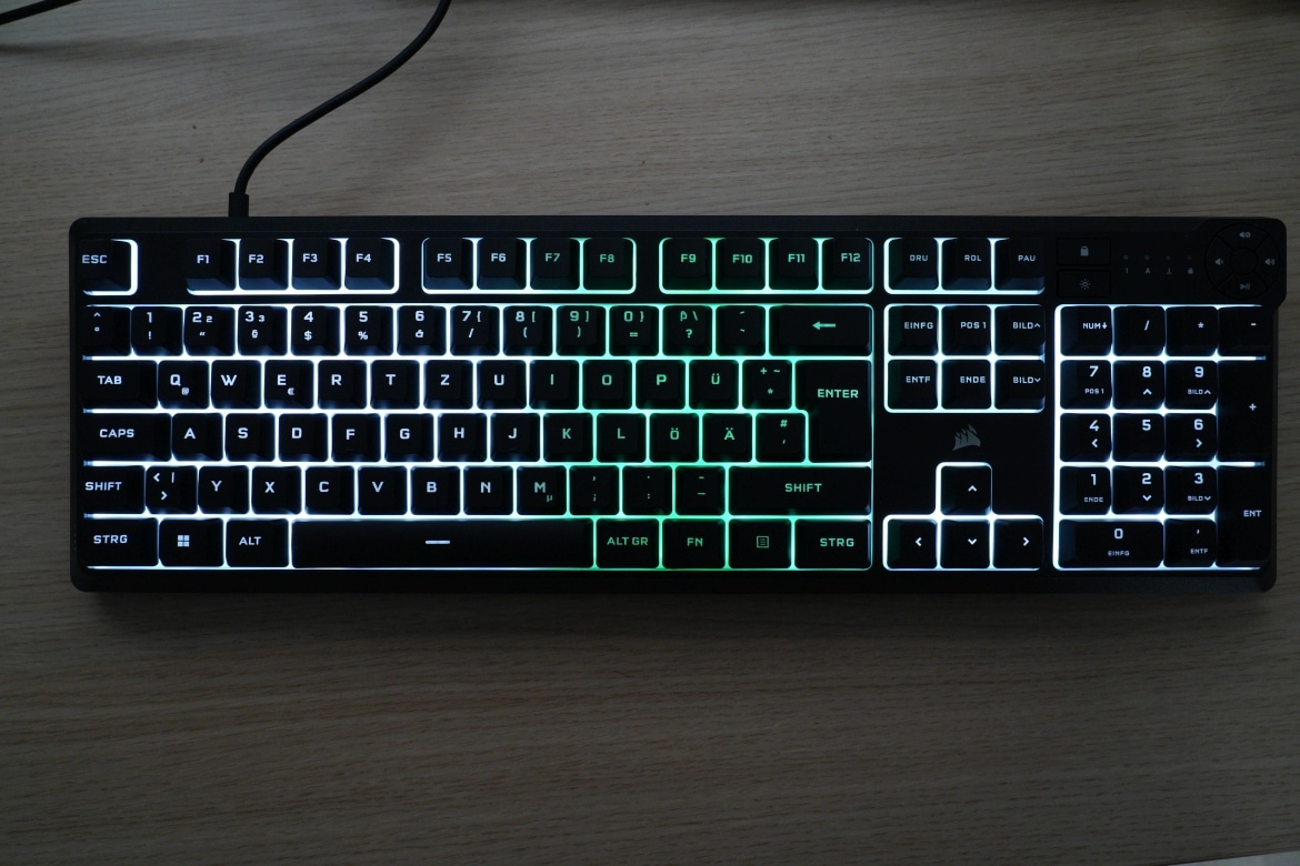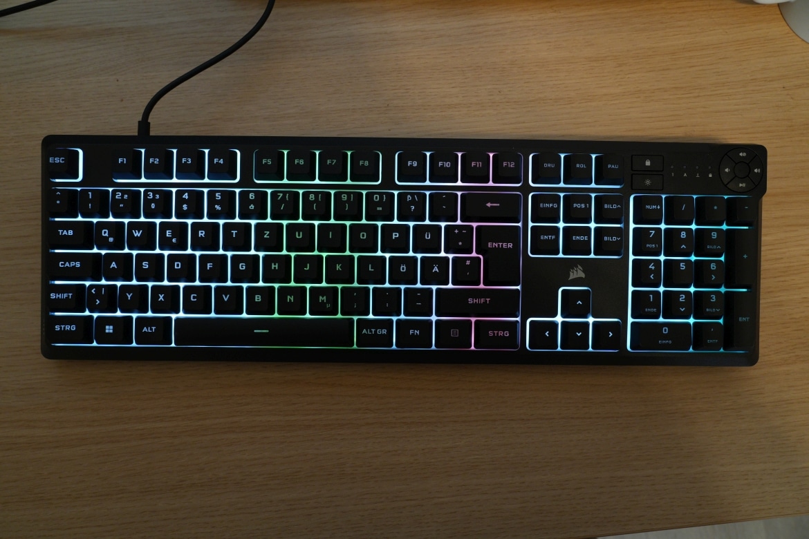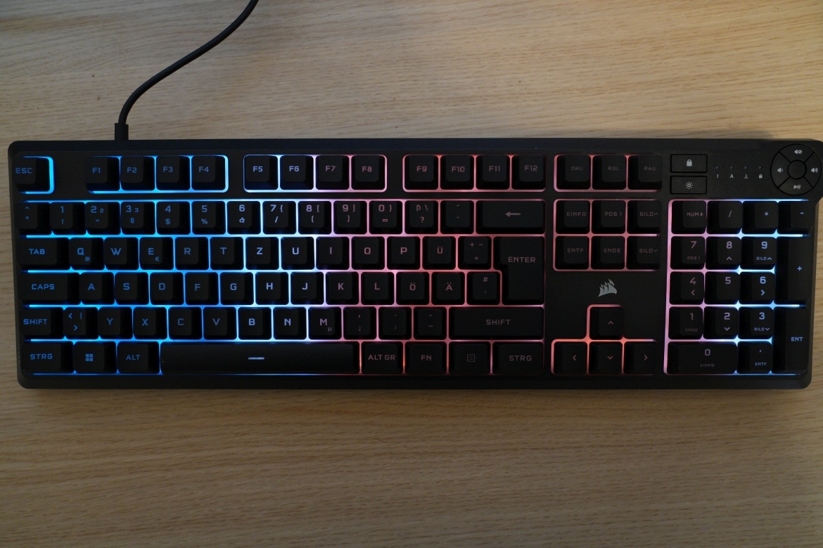 Die Präzision (und das absolut befriedigende Gefühl beim Auslösen) einer mechanischen Tastatur erreicht man hier aber nicht einmal ansatzweise. Wenn dich das nicht stört, dann erhältst du mit der Corsair K55 Core eine überzeugende Full-Size-Tastatur zu einem absolut fairen Preis.