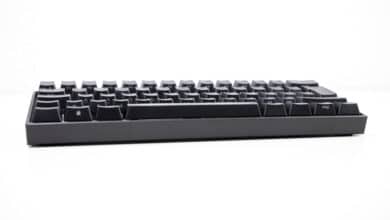 Aufgrund des Mini-Formats hat Corsair bei der K65 RGB Mini darauf verzichtet Funktionstasten und einen Num-Block zu verbauen. Somit sind zwar die wichtigen WASD-Tasten da, aber bei Spielen, die den Num-Block erfordern, wird es knapp. Unterm Strich dürften aber die meisten Games spielbar sein. Vermutlich macht sich die K65 RGB Mini besonders bei gleichzeitigen Office-Tätigkeiten und für unterwegs gut, wenn man mal auswärts zocken oder arbeiten muss.