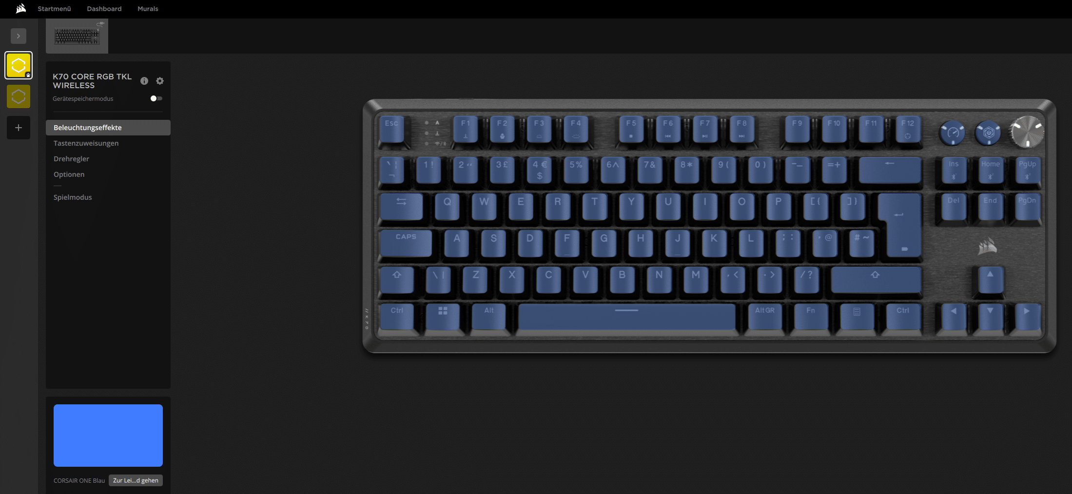 Eure gewünschten Einstellungen könnt ihr auch direkt auf der Tastatur speichern. Bis zu 5 Profile können nämlich direkt gespeichert und überall mit hin genommen werden. Benötigt ihr mehr, braucht ihr iCUE. Dort könnt ihr dann so viele Profile anlegen, wie ihr möchtet.