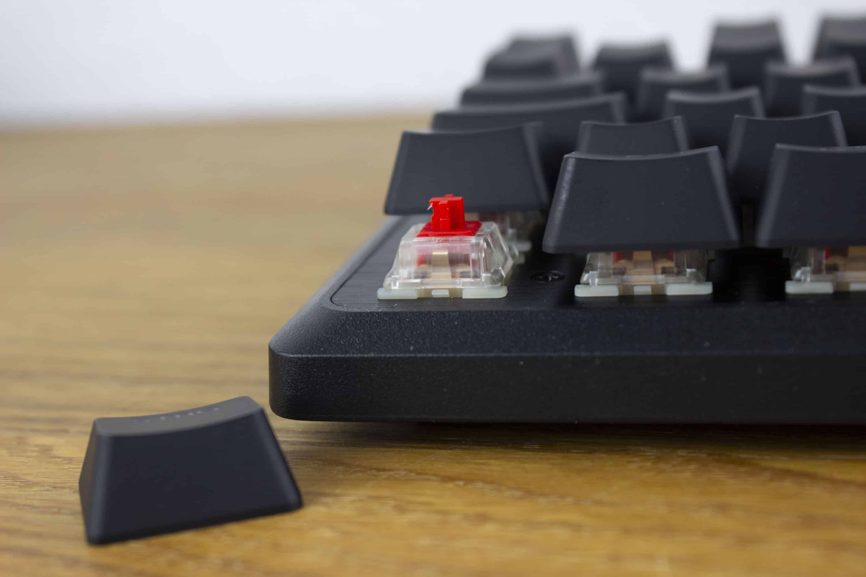 Die verwendeten MLX Red v2 sind geschmiert, was für ein angenehmeres Tippgefühl sorgen soll. Gleichzeitig ist die Technik zwischen zwei schalldämpfenden Schichten platziert, um die Tastengeräusche etwas abzudämpfen. Das Finish der Konstruktion ist eine Deckplatte aus Aluminium. Solltet ihr die Tastatur reinigen oder die Keycaps tauschen wollen, können diese einfach abgezogen werden. Extra Werkzeug ist dafür nicht notwendig – bei beiden Modellen.