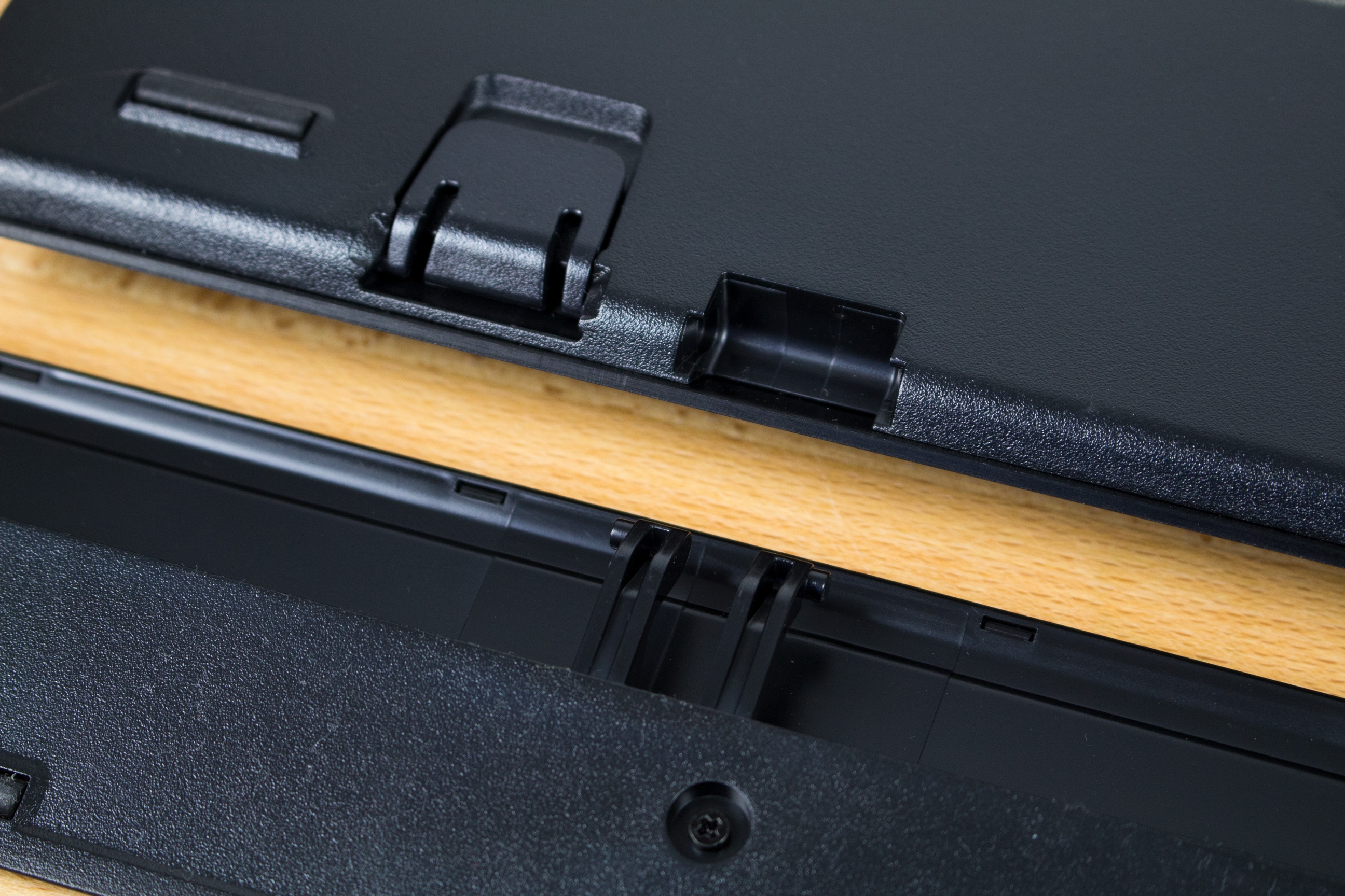 Alle Ecken der Tastatur sind abgerundet, dennoch gibt es durch die Metallplatte, die leicht übersteht, Kanten. Bereits beim ersten Anblick der mit 1,2 Kilogramm recht schweren Tastatur wird ersichtlich, dass es sich um ein qualitativ sehr hochwertiges Produkt handelt.