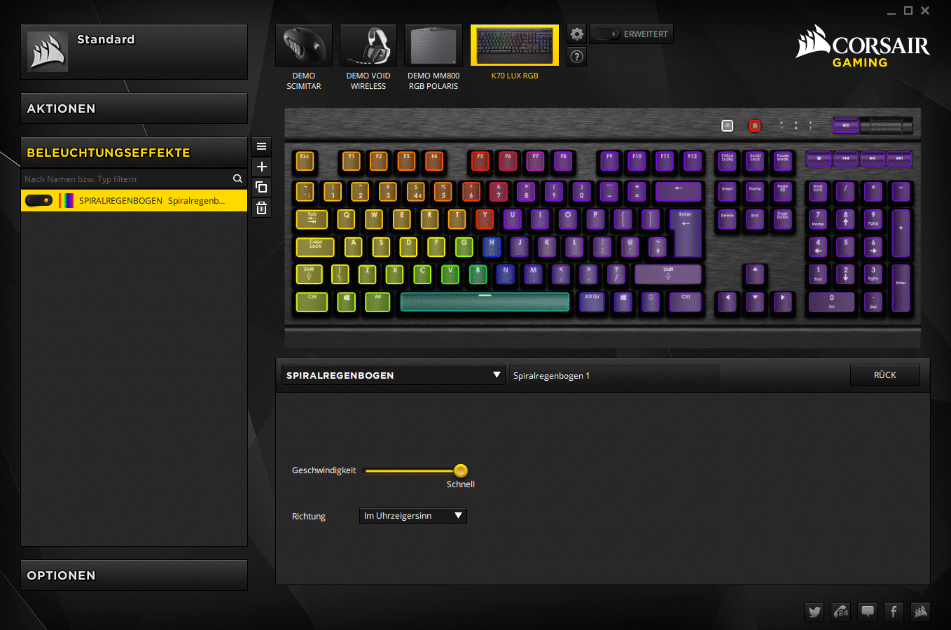 Für Fans derartiger Effekte stellt dies sicherlich eine sehr gelungene Funktion dar. Unzählige Effekte, verschiedenste Kombinationsmöglichkeiten und das Abspeichern der erstellten Profile lassen die Corsair K70 Lux RGB zu einer besonders ansprechenden Tastatur werden.