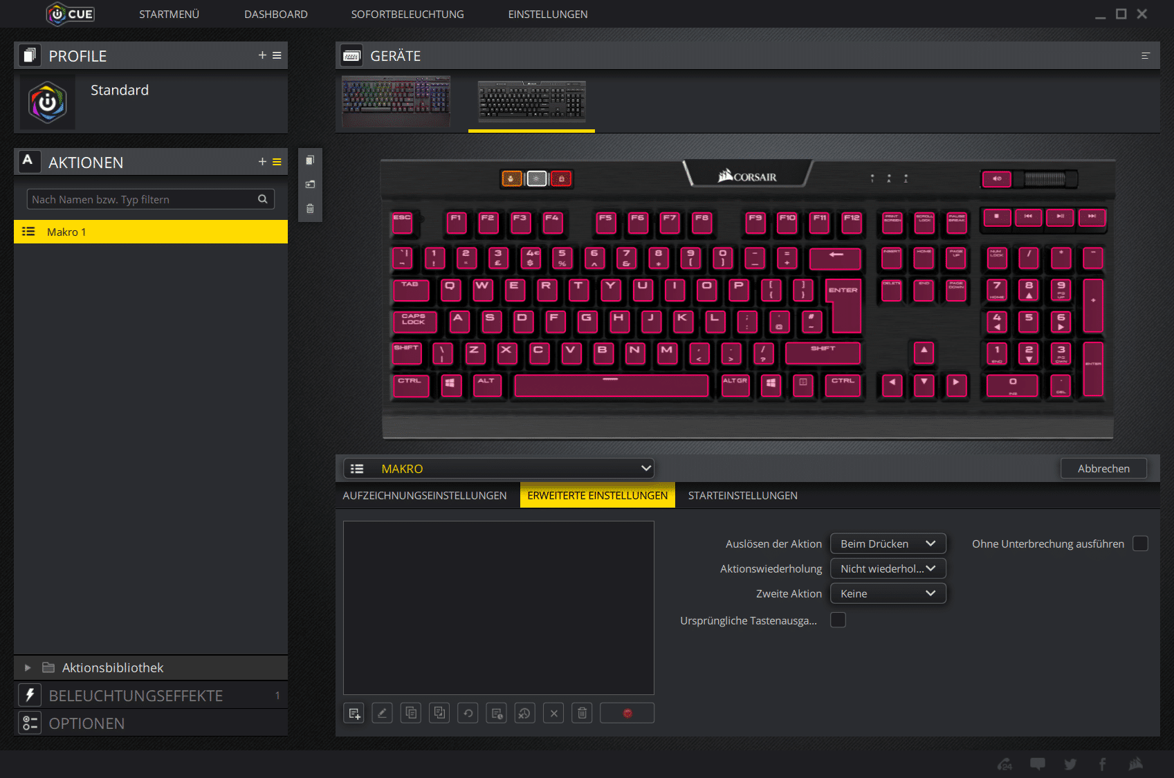 Ebenso lassen sich Makros und andere Funktionen einfach auf beliebige Tasten legen und individuell programmieren. Der Funktionsumfang ist hier nahezu unermeßlich.