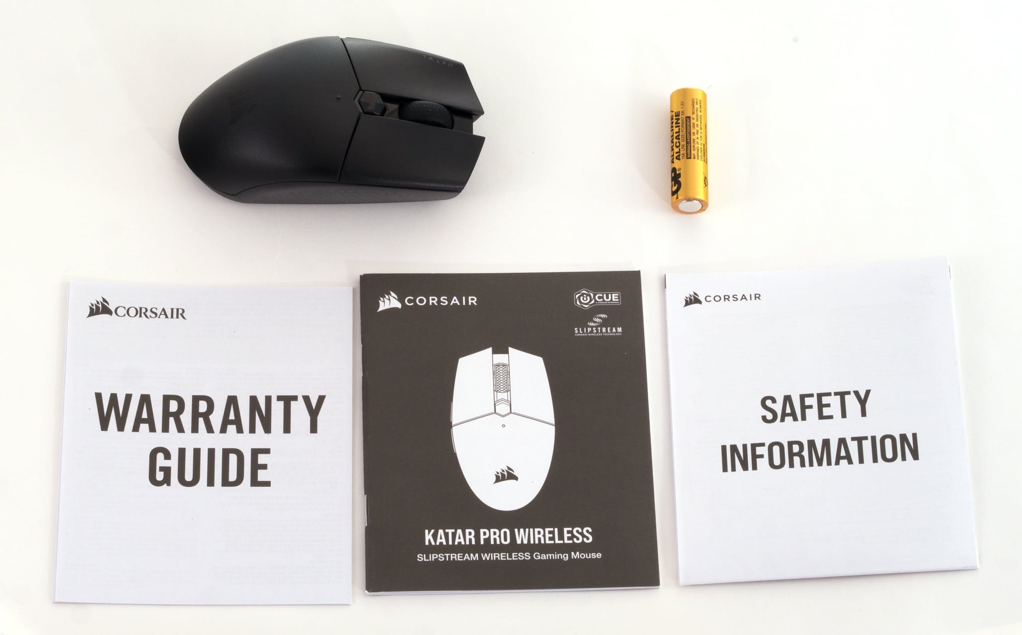 Beim Zubehör gibt sich Corsair schlicht: Neben der Maus selbst gibt es vom Hersteller noch den WLAN-Empfänger, drei Papierheftchen mit weiteren Informationen und eine AA-Batterie. Für eine Verbindung per Bluetooth muss das entsprechende Gerät die Schnittstelle unterstützen.