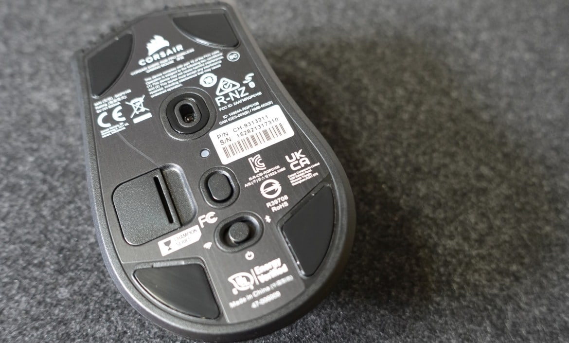 Eine weitere Taste findet sich darüber hinaus an der Unterseite. Diese ermöglicht den schnellen Wechsel zwischen verschiedenen Profilen, die sich direkt im internen Speicher ablegen und mithilfe von Corsairs iCUE-Software vollständig anpassen lassen. Weitere Besonderheit: Ebenfalls an der Unterseite besteht die Möglichkeit, zwischen verschiedenen Wireless-Betriebsmodi zu wechseln. Neben dem nahezu latenzfreien Slipstream kann die Gaming-Maus auch via Bluetooth (Version 4.2) verbunden werden, um die Kompatibilität zu erhöhen.