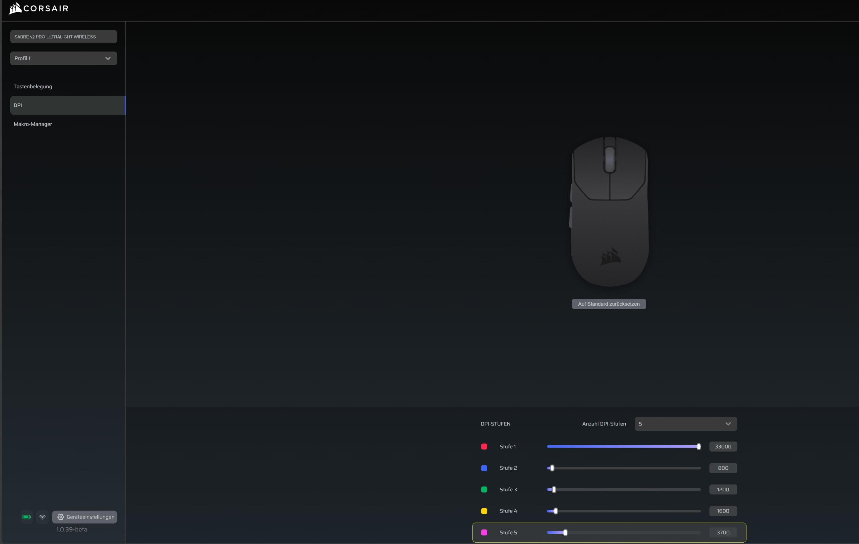 Ein weiteres Lob verdient die Corsair Sabre v2 Pro für ihre Anpassung. Denn Corsair setzt hier nun auch, wie mittlerweile viele andere Hersteller, auf ein praktisches Web-Interface. Bedeutet: Ihr könnt sämtliche Einstellungen direkt über den Browser vornehmen und müsst nicht auf die hauseigene iCUE-Software zurückgreifen.