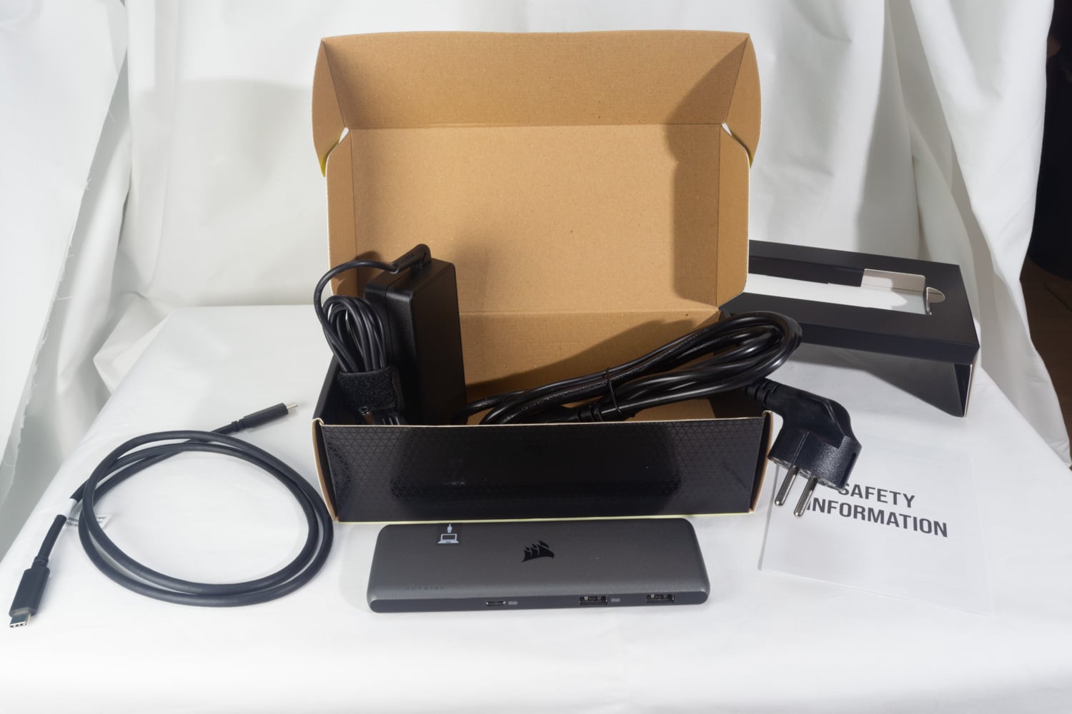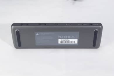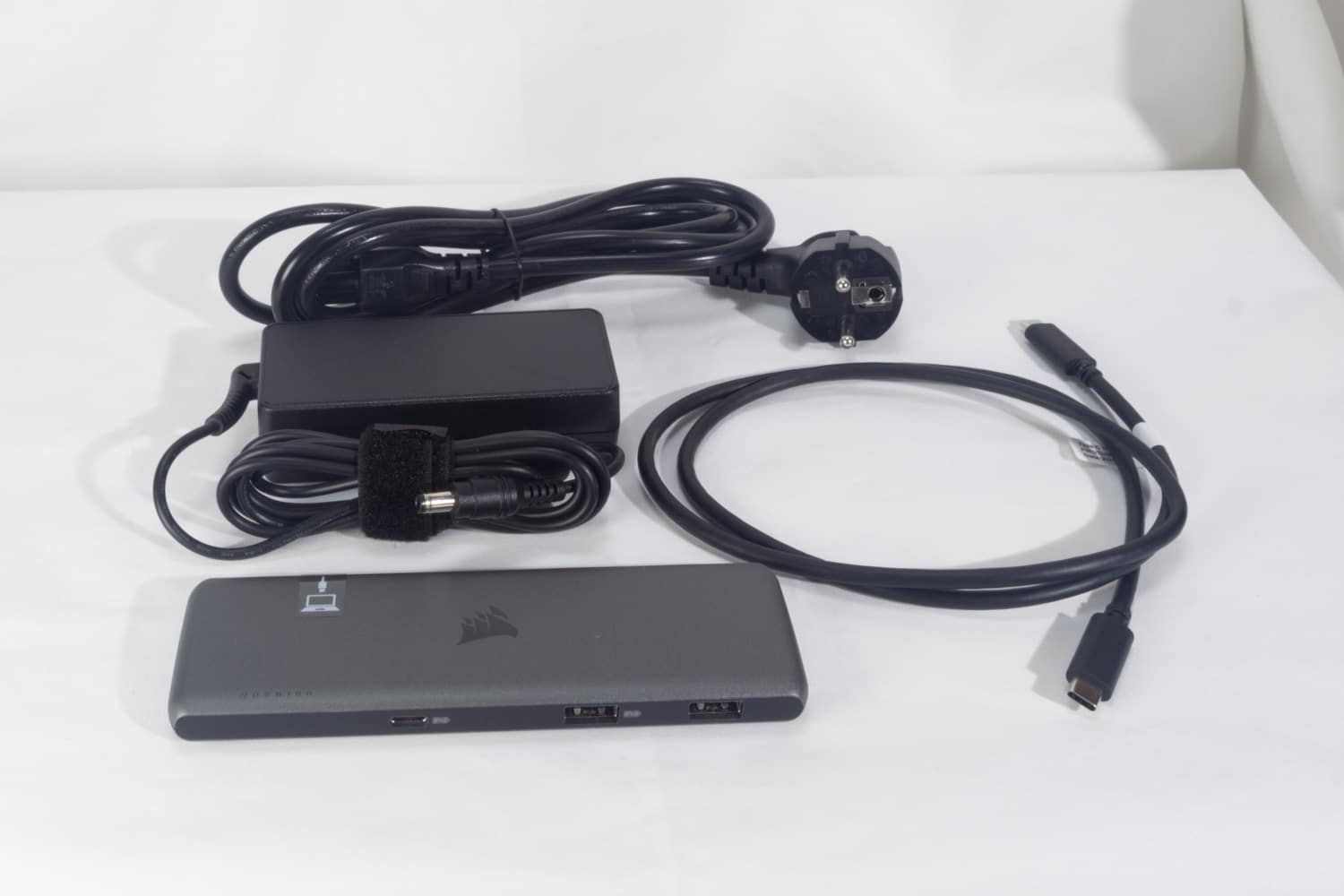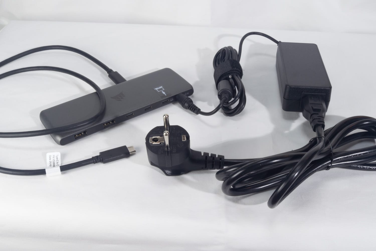 Insgesamt besitzt das Gehäuse des USB100 von Corsair neun Anschlüsse, zu denen wir auch den Stromanschluss und den USB-C-Port für die Verbindung mit dem Hauptgerät (Mac, PC, Laptop) zählen.