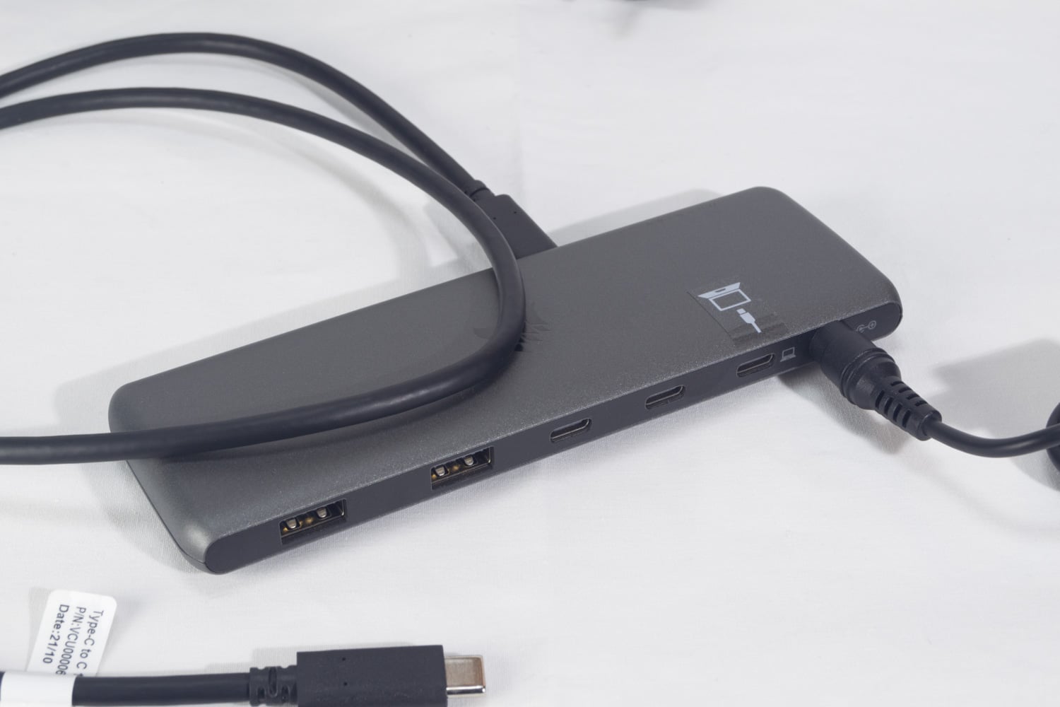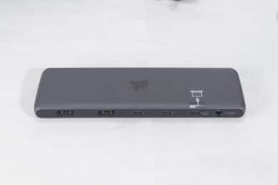 Die sieben USB-Ports des USB100 sind auf die Vorder- und Rückseite des Gehäuses verteilt. Drei der Ports sind vom Typ C, vier vom Typ A. Zwei der vorderseitigen Ports vom Typ A und C dienen neben der Datenübertragung auch zum schnelleren Laden angeschlossener Geräte, wozu sie mit mehr Leistung ausgestattet sind als die übrigen Ports, nämlich 7,5 (Typ A) und 15 Watt (Typ C).