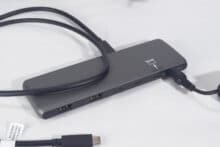 Dem Hub liegt zum Anschluss an einen Mac oder ein Windows-System ein USB-C Verbindungs-Kabel bei (Typ C auf C Stecker). Je nach Einsatzszenario kann das Kabel allerdings mit nur einem Meter Länge schnell zu kurz ausfallen, hier wäre wenigstens ein weiterer halber Meter wünschenswert gewesen. Fehlt am PC- oder Mac-System eine Buchse vom Typ USB-C, wäre ein geeigneter USB-Adapter (Typ C Buchse auf Typ A Stecker) für den Anschluss nötig. Hierbei muss auf eine hohe Geschwindigkeit geachtet werden, damit der Adapter nicht zum Flaschenhals wird.