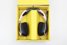 Der Inhalt der in Gelb und Schwarz gehaltenen Schachtel fällt recht spärlich aus. Neben dem Headset und dem USB-Dongle finden sich hier eine Bedienungsanleitung sowie ein USB-Kabel, über welches das Headset aufgeladen und bei Bedarf auch betrieben werden kann.