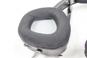 Durch die Polsterung am Bügel und die großzügigen Ohrmuscheln sitzt das Headset perfekt. Durch das Raster zum Einstellen der Größe eignet es sich für jeden Kopftyp, selbst Brillenträger werden durch den angenehmen Anspressdruck nicht zu kurz kommen. Nach langen Gaming-Session gibt es keine Schmerzen an den Ohren und die Textilien der Ohrmuscheln sorgen für frische Luft, um schwitzige Ohren zu vermeiden.