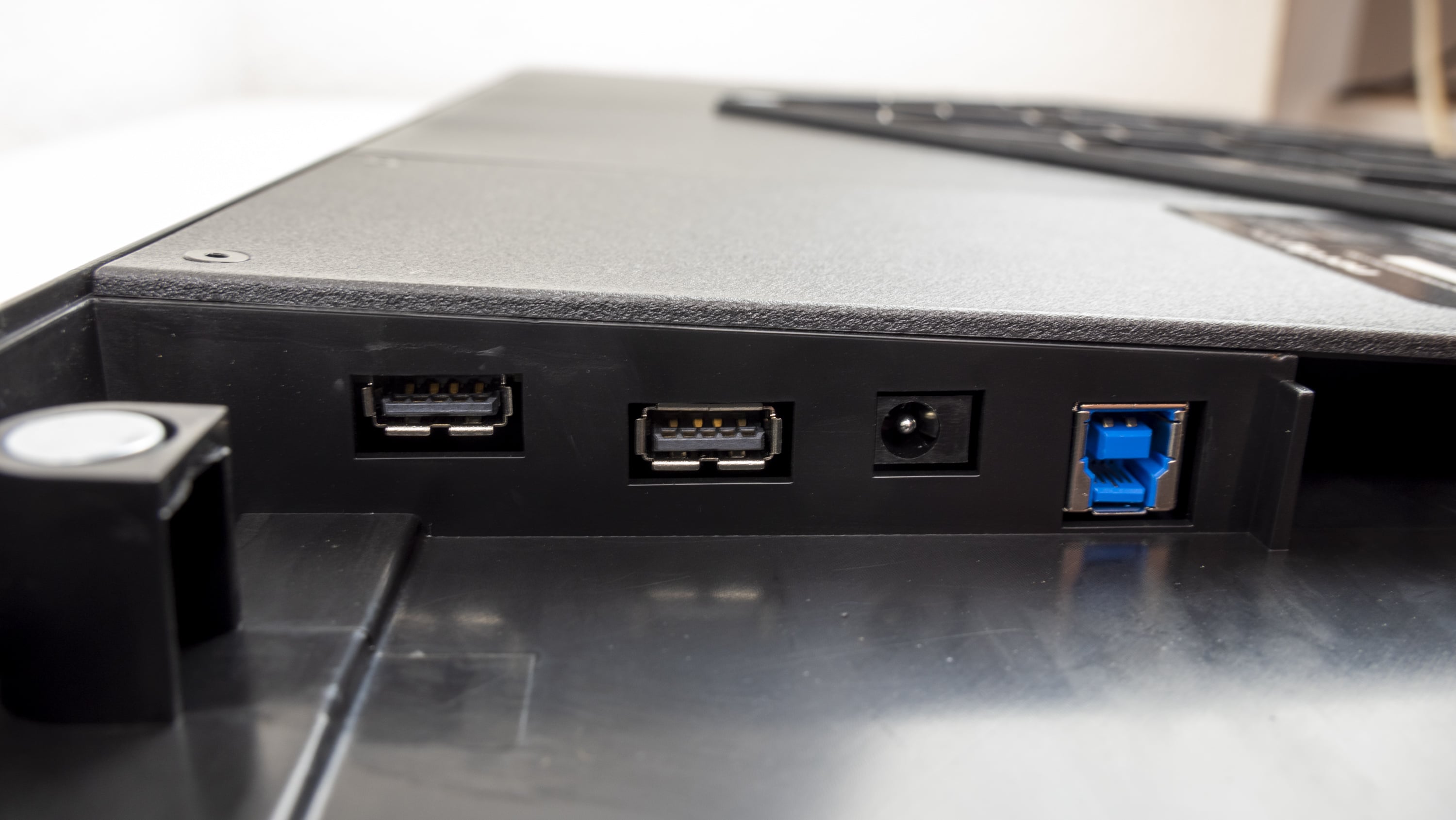Letztlich sieht man an Kabeln tatsächlich nur noch das Stück zwischen Peripherie und Verschwinden in der Auflage. Zudem ist latenzfreies Gaming durch USB 3.0 garantiert. Großartige Ausstattung!