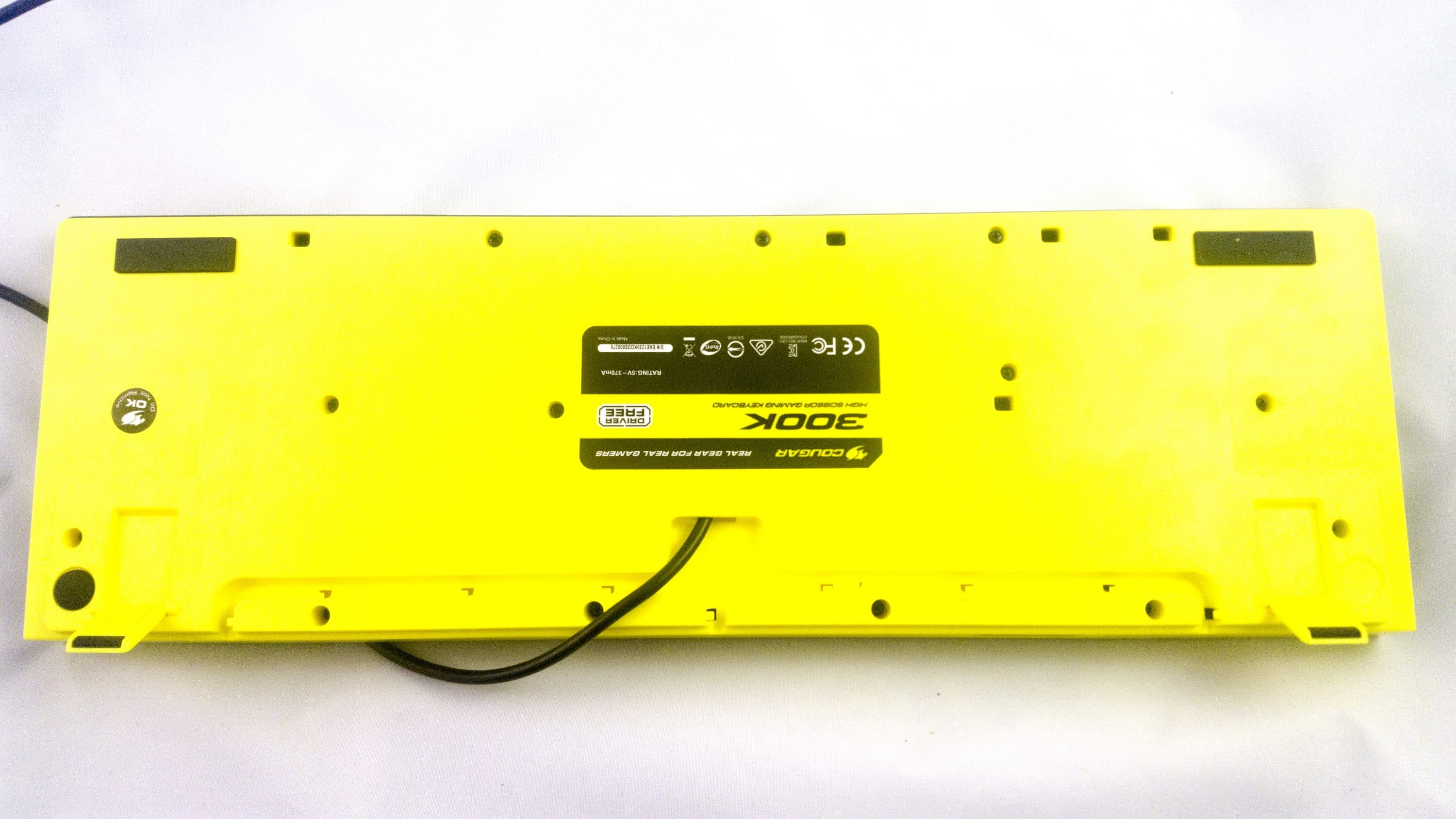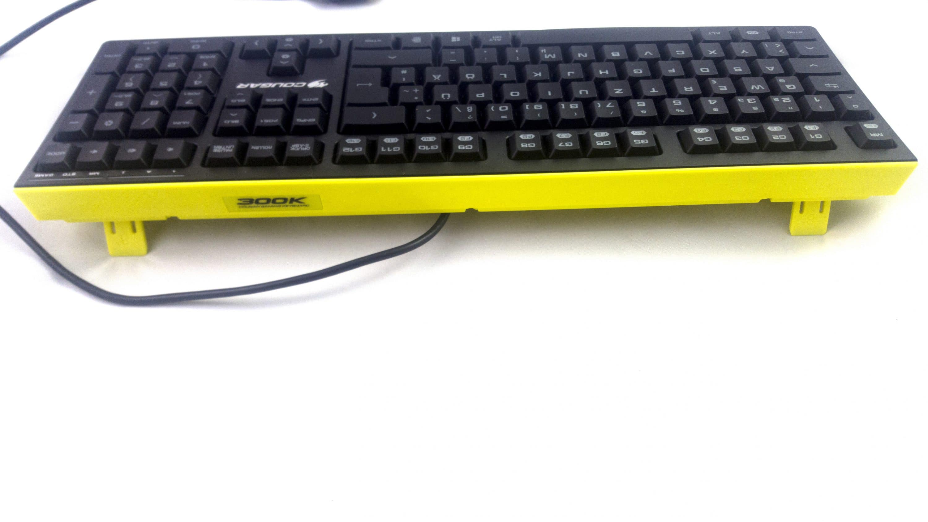 Auch die Verarbeitung der Cougar 300K ist sehr gut gelungen. Die Tastatur liegt gut auf dem Schreibtisch und rutscht nicht weg, auch wenn die Standfüße etwas „windig“ ausfallen. Die hier gewählten Materialien sind für diese Preisklasse sehr gut. Die Cougar 300K besteht fast komplett aus Kunststoff. Dies bringt den Vorteil, dass die Tastatur leicht ist.