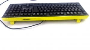 Des Weiteren hat die Tastatur ein gelbes Plastik-Gehäuse und leuchtet dazu in einem schönen gelb. Das Einzige, was mich an dem Design stört, ist dass die Windows-Taste auf der rechten Seite und die FN-Taste auf der linken Seite ist. Daran musste ich mich auch erst einmal gewöhnen.