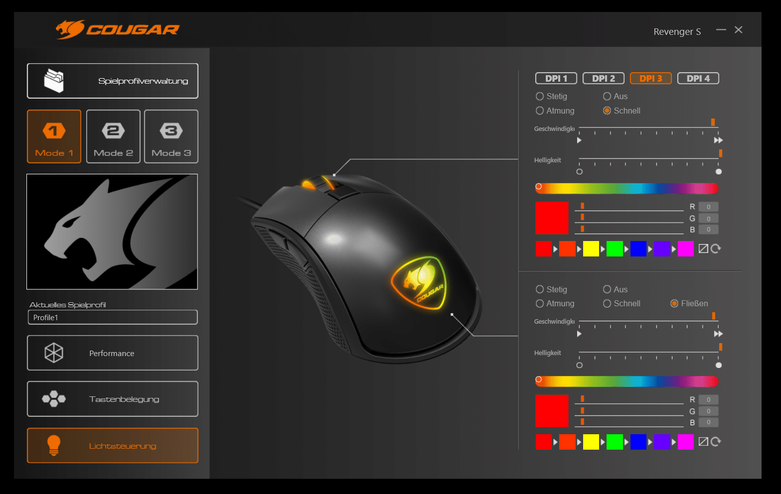 Die Software der Cougar Revenger S lässt mit ihren zahlreichen Einstellungsmöglichkeiten auch bei ambitionierten Spielern und Profi-Esportlern keine Wünsche offen.