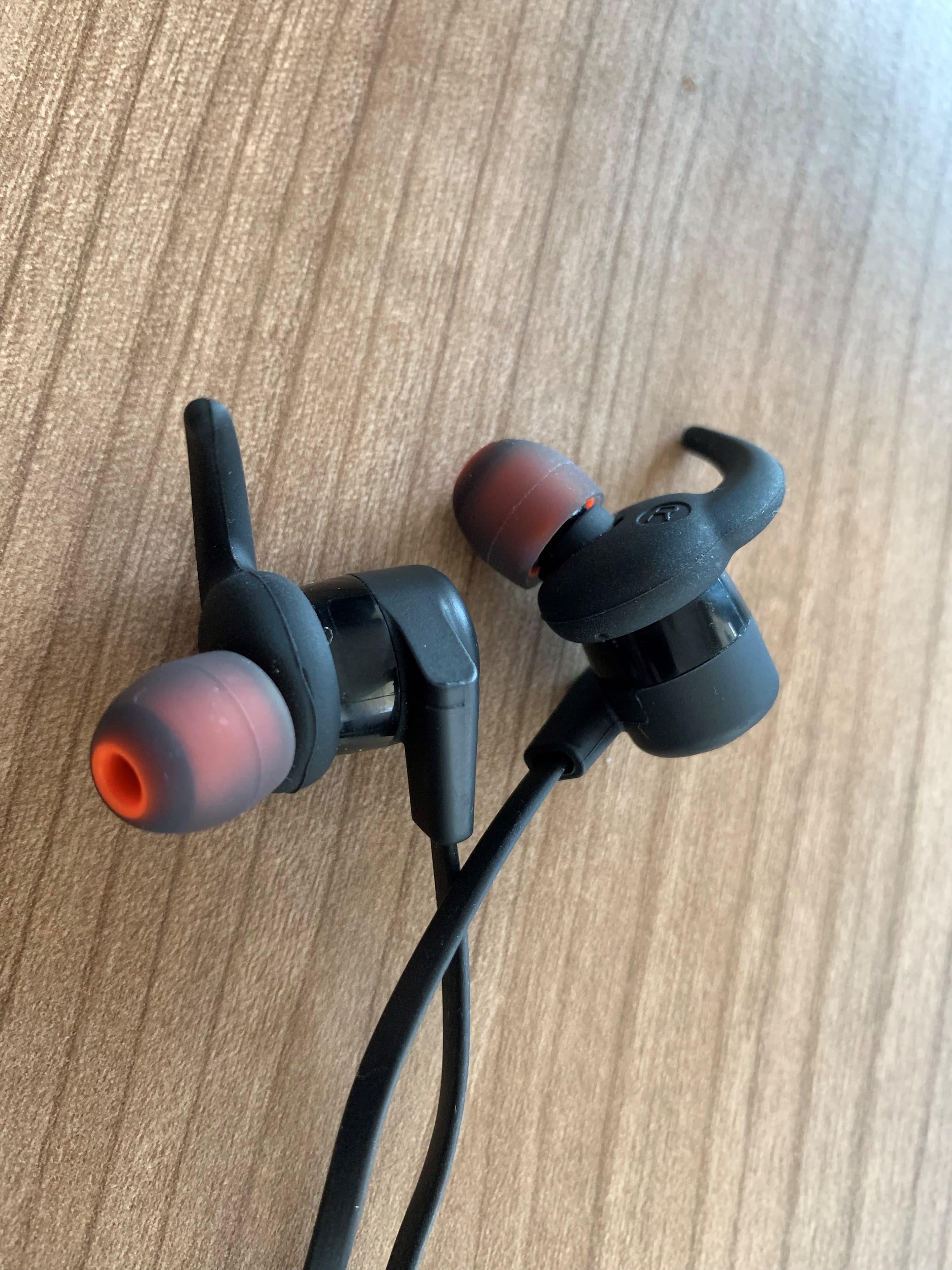 Durch die Sicherungsspitzen am Ohrstück bleiben die Kopfhörer erstaunlich gut im Ohr sitzen. Auch bei schnelleren Tätigkeiten fallen diese nicht aus dem Ohr. Im Test gab es weder bei sportlichen, noch in alltäglichen Aktivitäten Probleme.