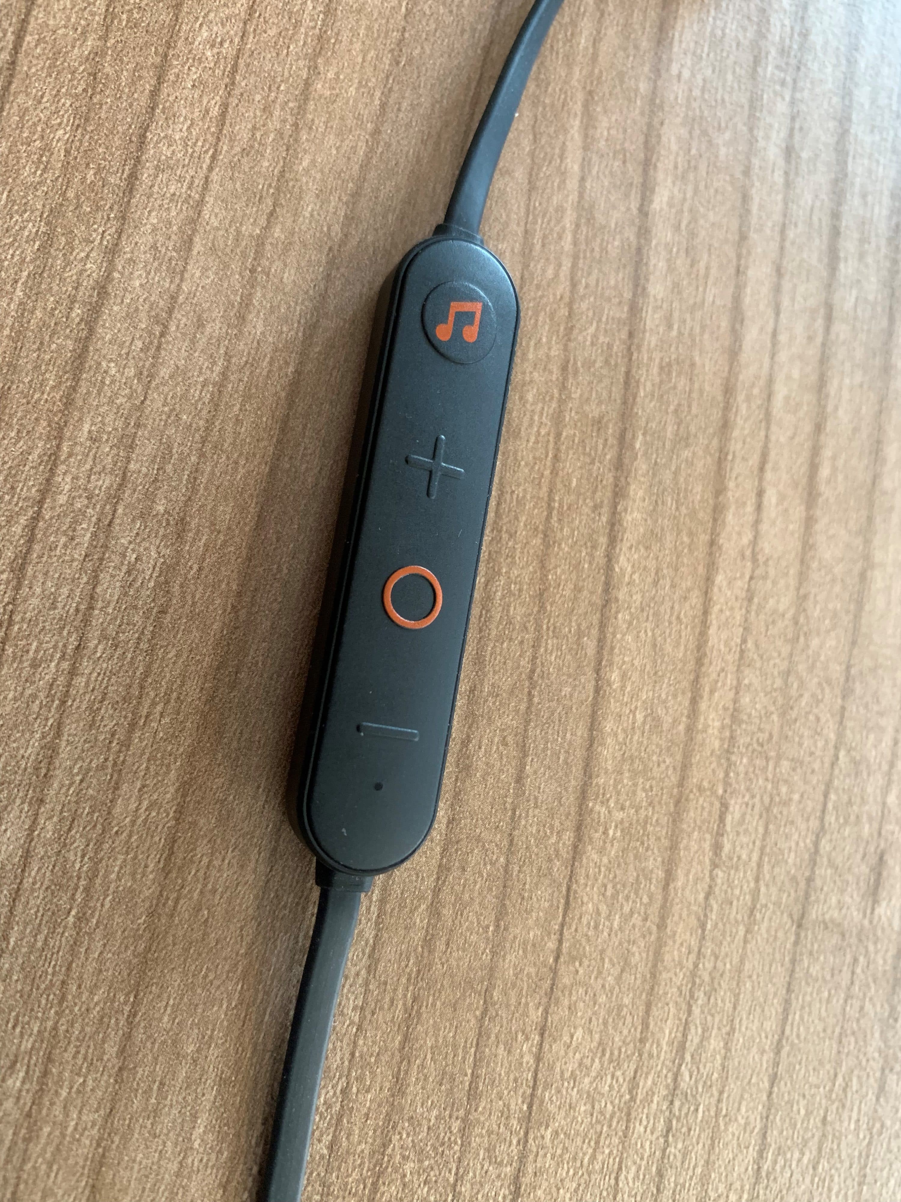 Zum Koppeln des In-Ear-Kopfhörers mit einem passendem Gerät, muss die mittlere orange Taste länger gedrückt werden. Wurde eine Kopplung bereits durchgeführt, verbinden sich die Geräte automatisch nach dem Start des Hörers.