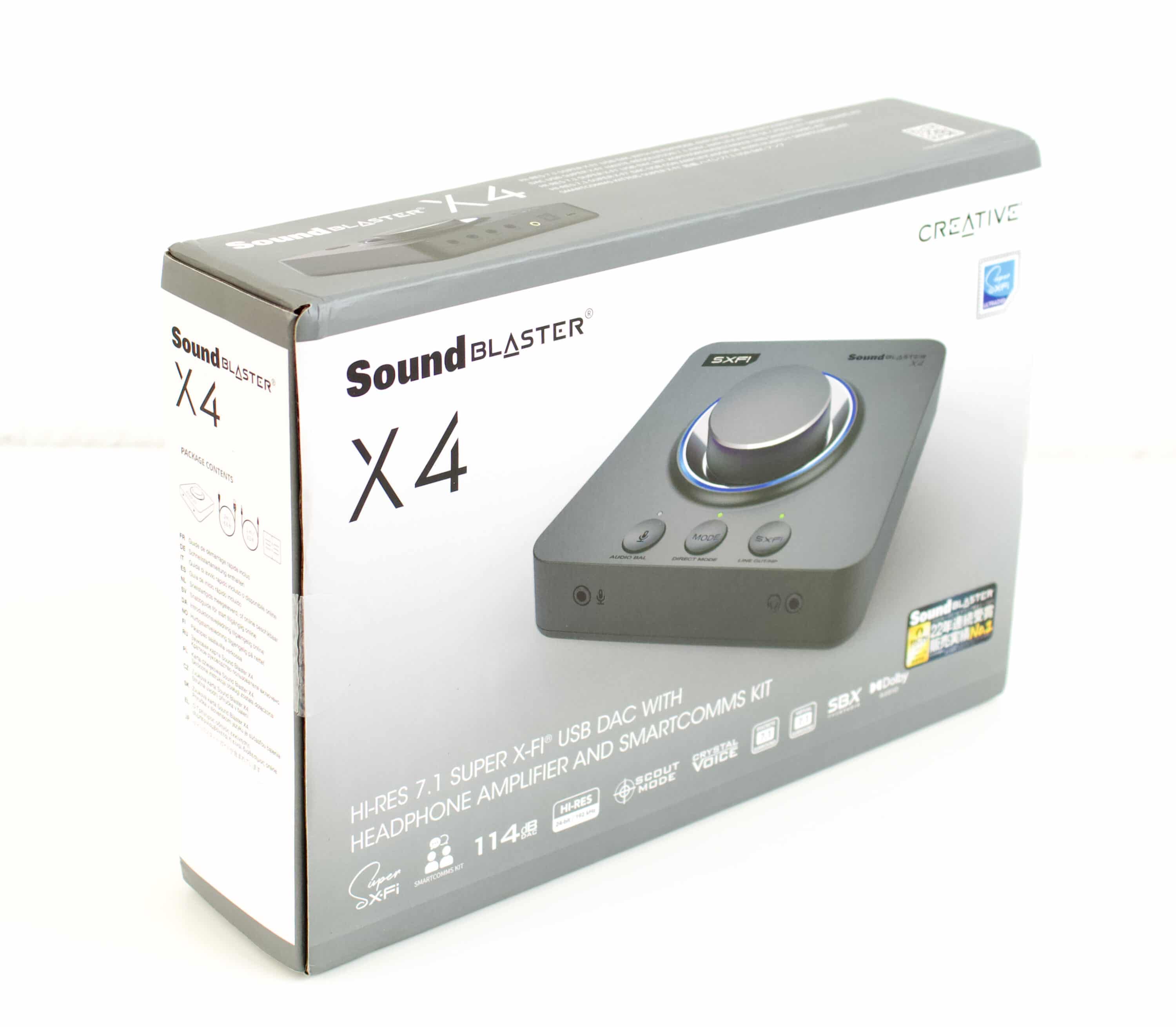 Auffällig im Vergleich zum Vorgänger ist technisch gesehen die Entfernung der 32 bit Abtastrate und der um 1 dB geringere Dynamikbereich. Ansonsten sieht die Sound Blaster X4 auf dem Papier ähnlich aus wie die X3, wenn auch etwas schwerer und minimal größer.