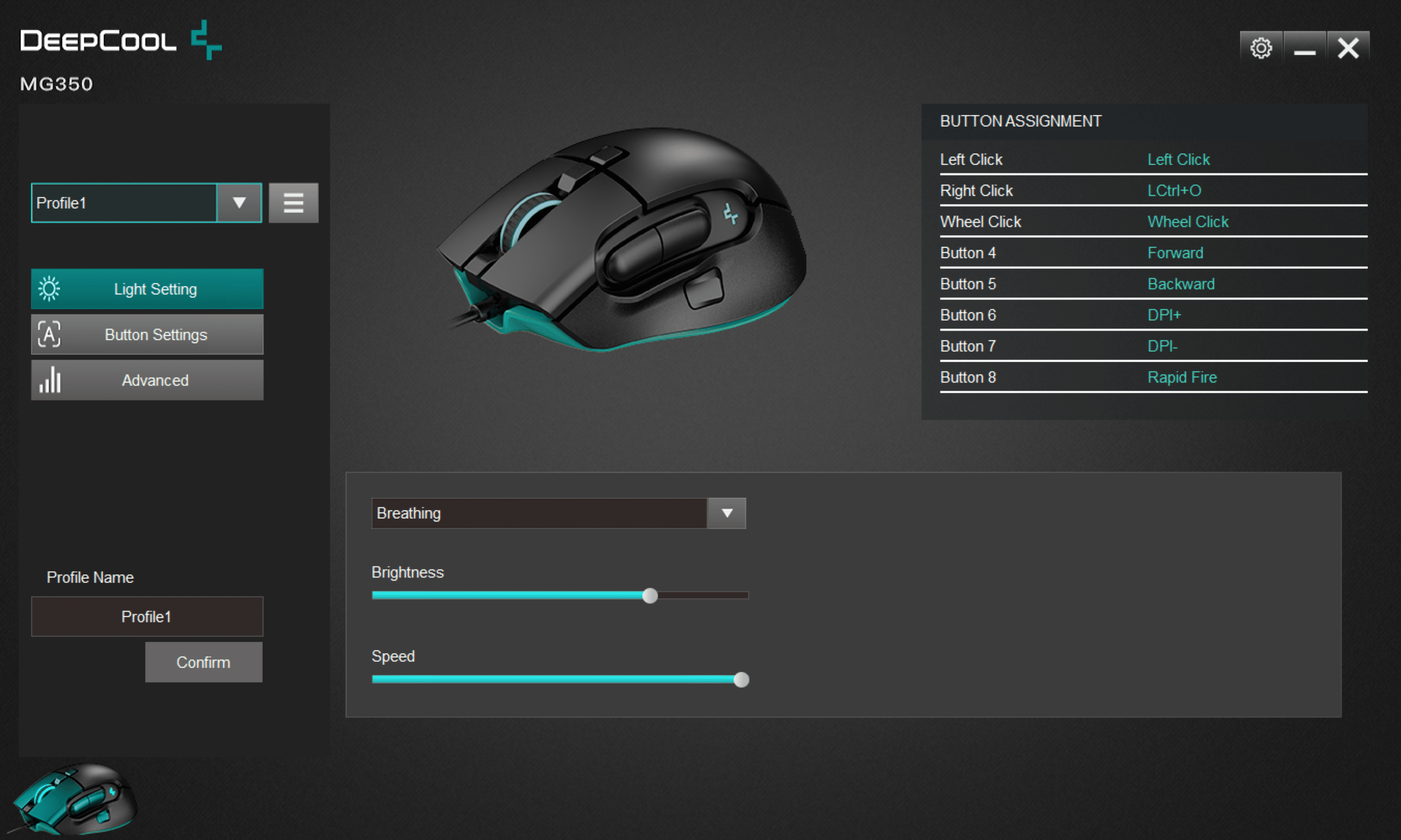 Zur weiteren Konfiguration der MG350 bietet DeepCool auch eine Software an, die über die Herstellerwebsite zum Download angeboten wird. Das Programm ist gute 10 MB groß und kann sehr schnell sowie ohne Registrierungszwang installiert werden.