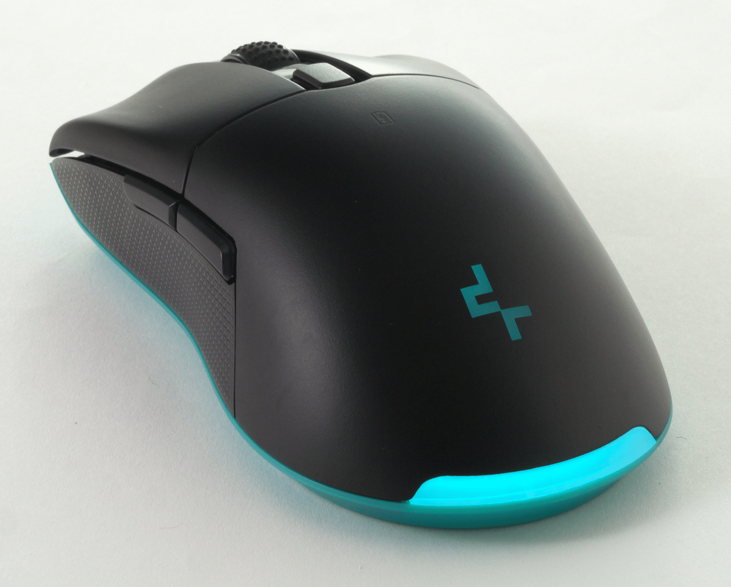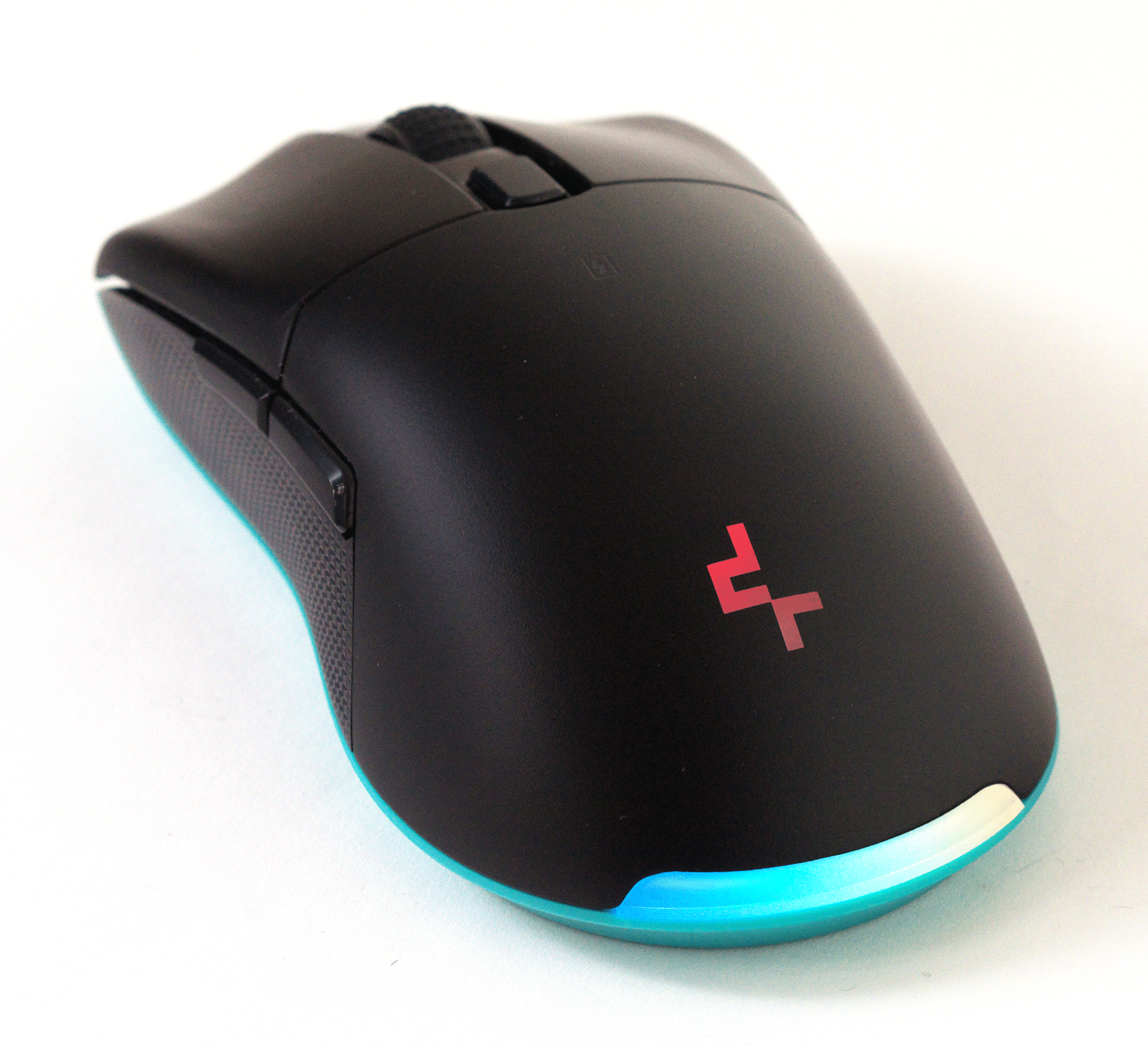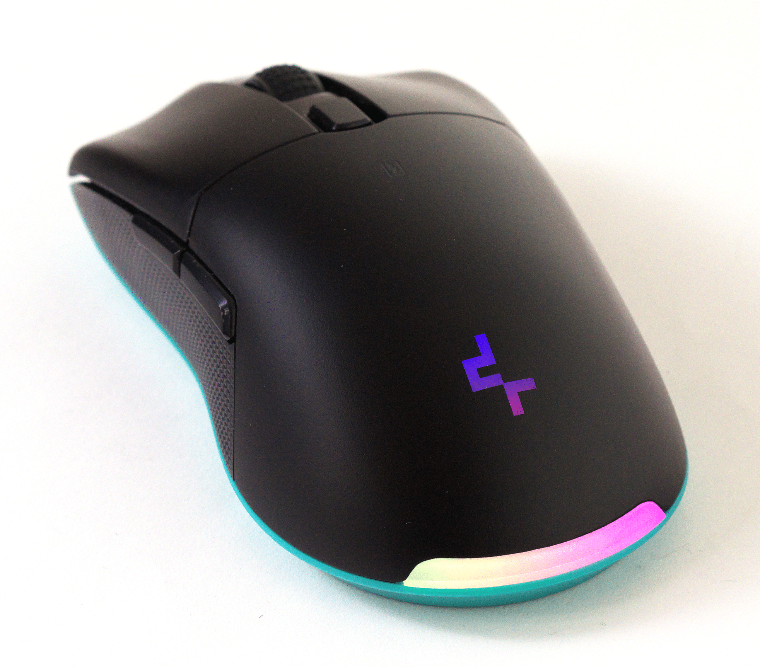 Die DeepCool MG510 setzt auf einen verhältnismäßig üblichen Aufbau. Das Gehäuse der Maus geschwungen geformt und bis auf die Tasten symmetrisch. Dabei gibt es eine Zusatztaste hinter dem Mausrad, eine Vor- und Zurück-Taste an der linken Seite sowie zwei Buttons an der Unterseite. Die Zusatztaste hinter dem Mausrad dient standardmäßig zum Ändern der Beleuchtung, wohingegen mit den Buttons auf der Unterseite die Auflösung und Abtastrate verändert werden können. Außerdem befindet sich dort auch ein zweistufiger Schalter, mit dem die Maus und die Beleuchtung aktiviert werden können.