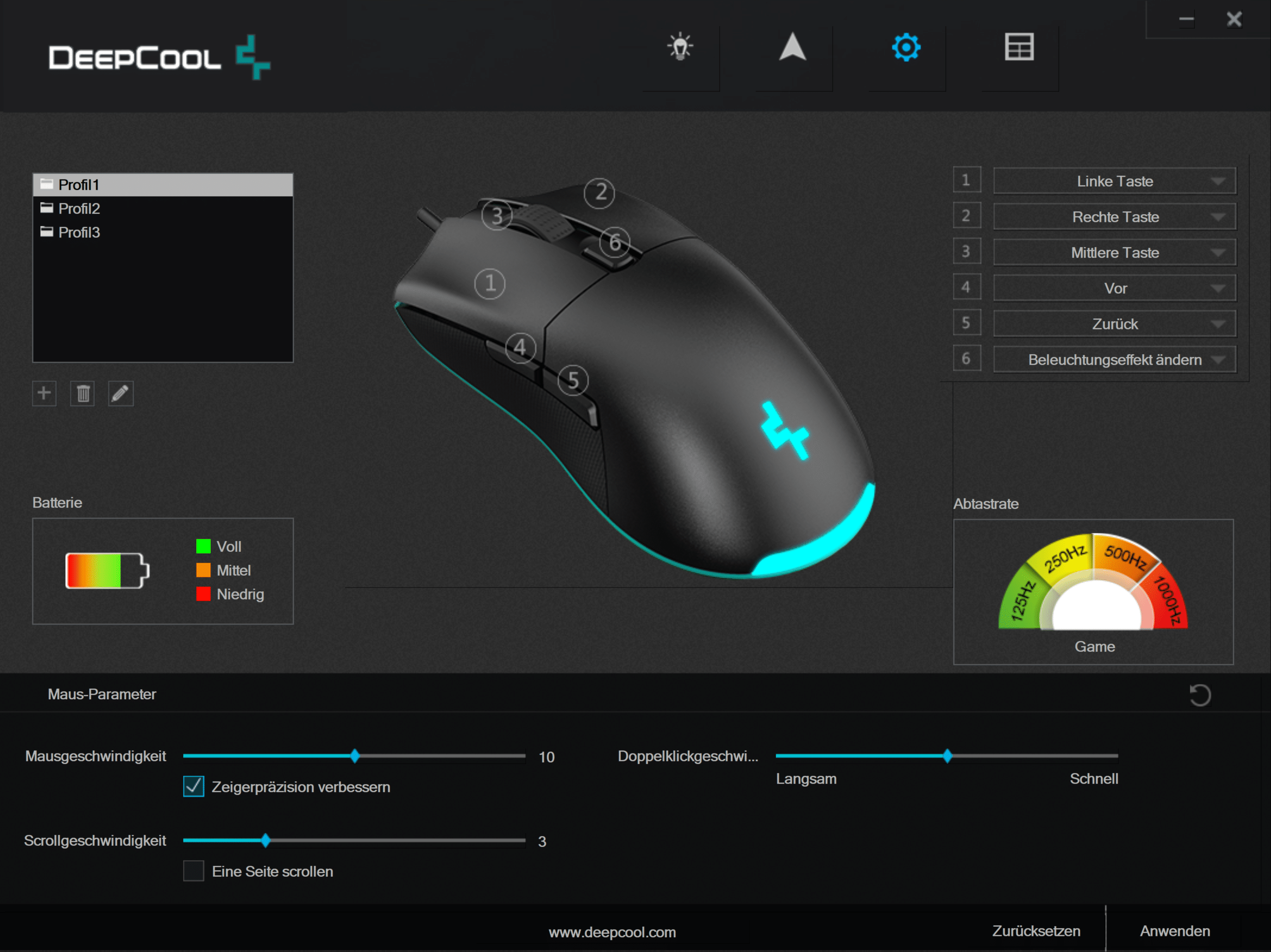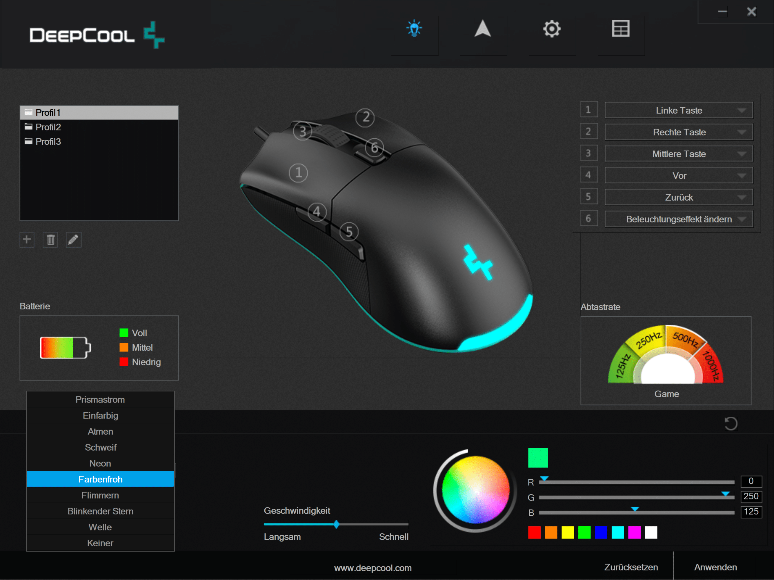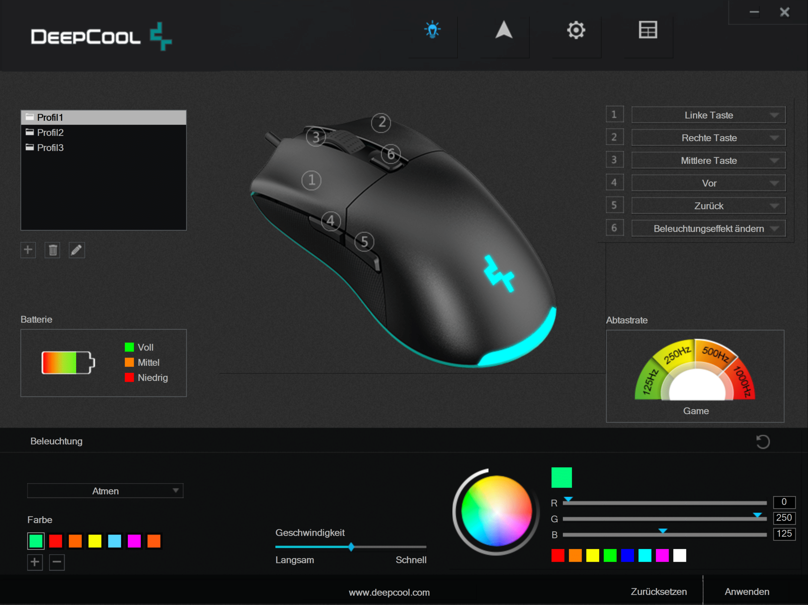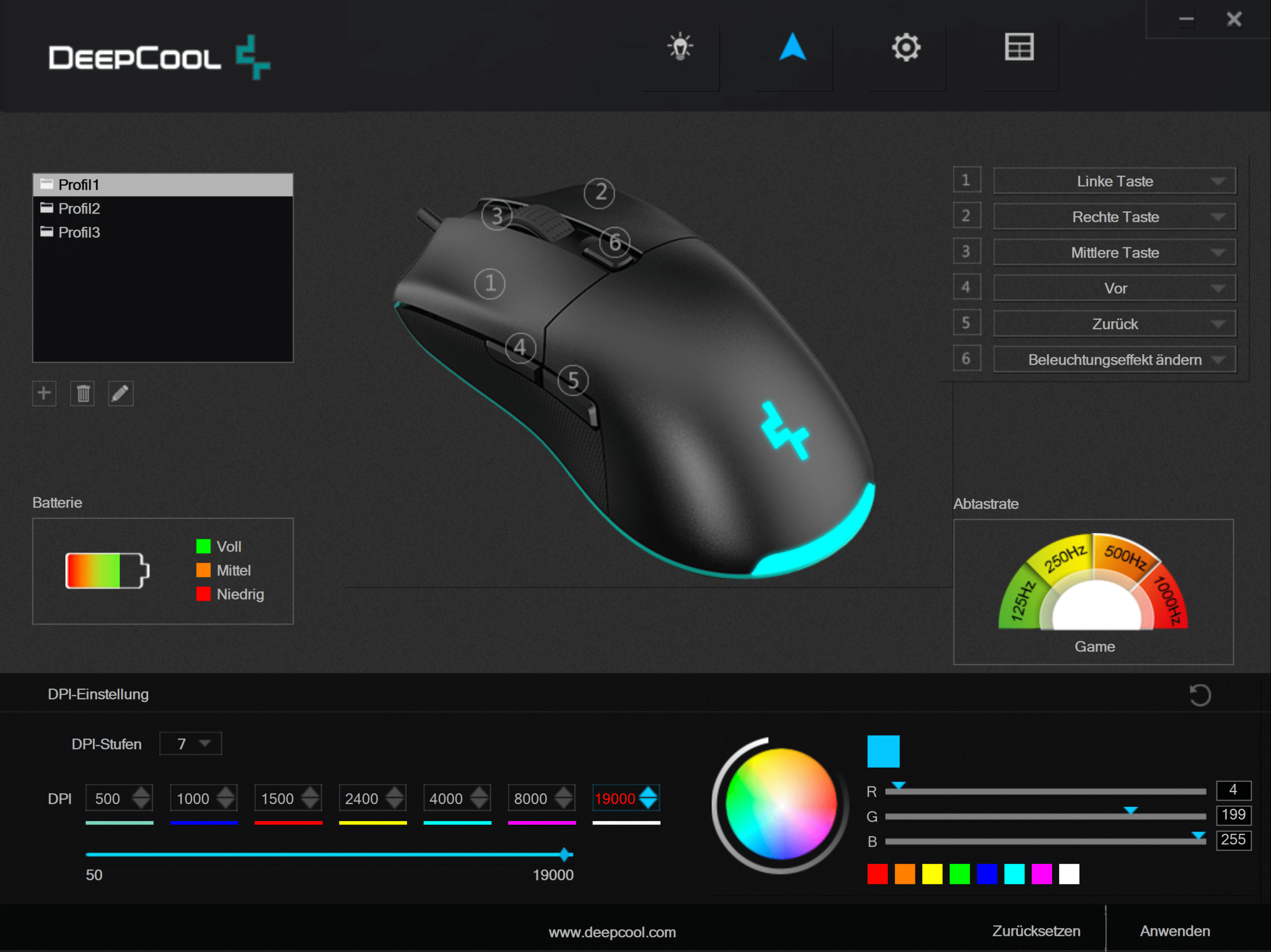 Wer mehr Spielraum bei der Konfiguration der MG510 benötigt, für den wird von DeepCool eine entsprechende Software bereitgestellt. Diese ist rund 3 MB große und lässt sich über die Herstellerwebsite herunterladen. Die anschließende Installation des Tools geht schnell und ohne Account-Bindung von der Hand.