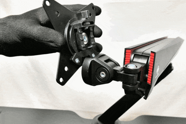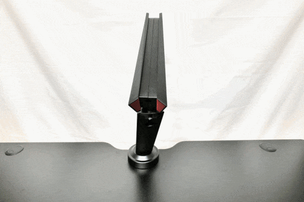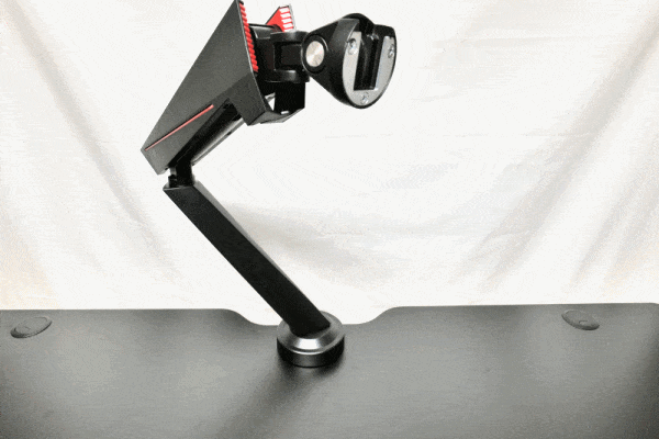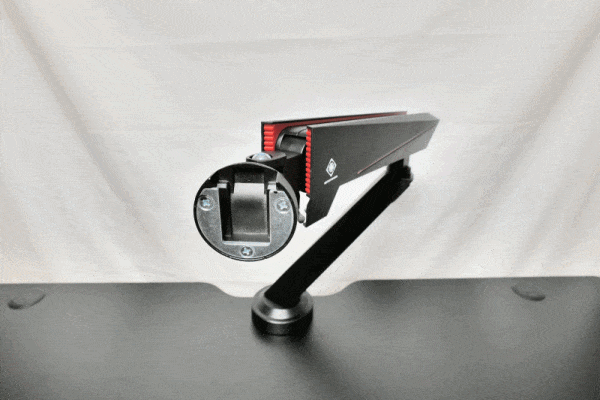 Beide Arme, der untere und der obere, lassen sich frei um ihre Z-Achsen rotieren. Hierdurch erhält man bereits große Freiheit in der Positionierung des Monitors. Dennoch ist es schon bei Montage ratsam durch ausprobieren die geeignetste Position für die Anbringung des GAM-101 an der Tischplatte zu ermitteln. Das spielt dann eine Rolle, wenn die Bewegungsfreiheit der Arme beispielsweise durch Wände oder andere Möbelstücke eingeschränkt ist.