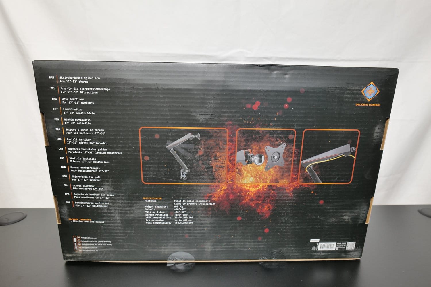 Wir testeten die GAM-101 am elektrisch höhenverstellbaren Tisch DT410, ebenfalls von Deltaco Gaming. Über die Marke Deltaco Gaming vertreibt der schwedische Hersteller Deltaco seit 2017 unter anderem PC-Peripherie und -Möbel für preisbedachte Gamerinnen und Gamer.