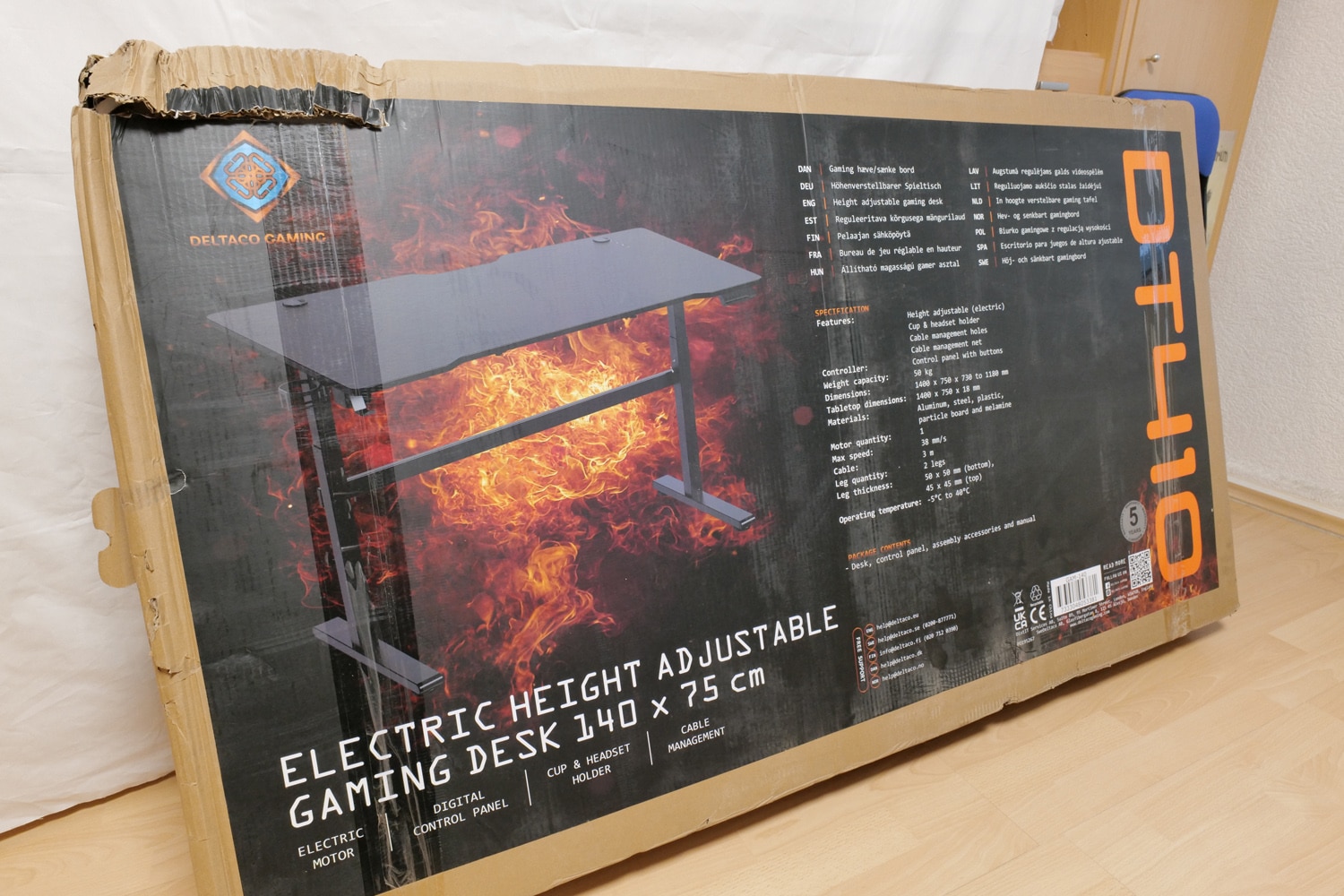 Geliefert wird der DT410 in einem einzelnen großen Umkarton. Obwohl der Tisch in diesem Zustand vom Gewicht her auch alleine zu bewegen wäre, sollte aufgrund der Sperrigkeit definitiv eine zweite Person beim tragen behilflich sein. Dies gilt laut Anleitung im Übrigen auch für die spätere Montage, wobei wir diese auch gut im Alleingang bewerkstelligen konnten, aber dazu später mehr.