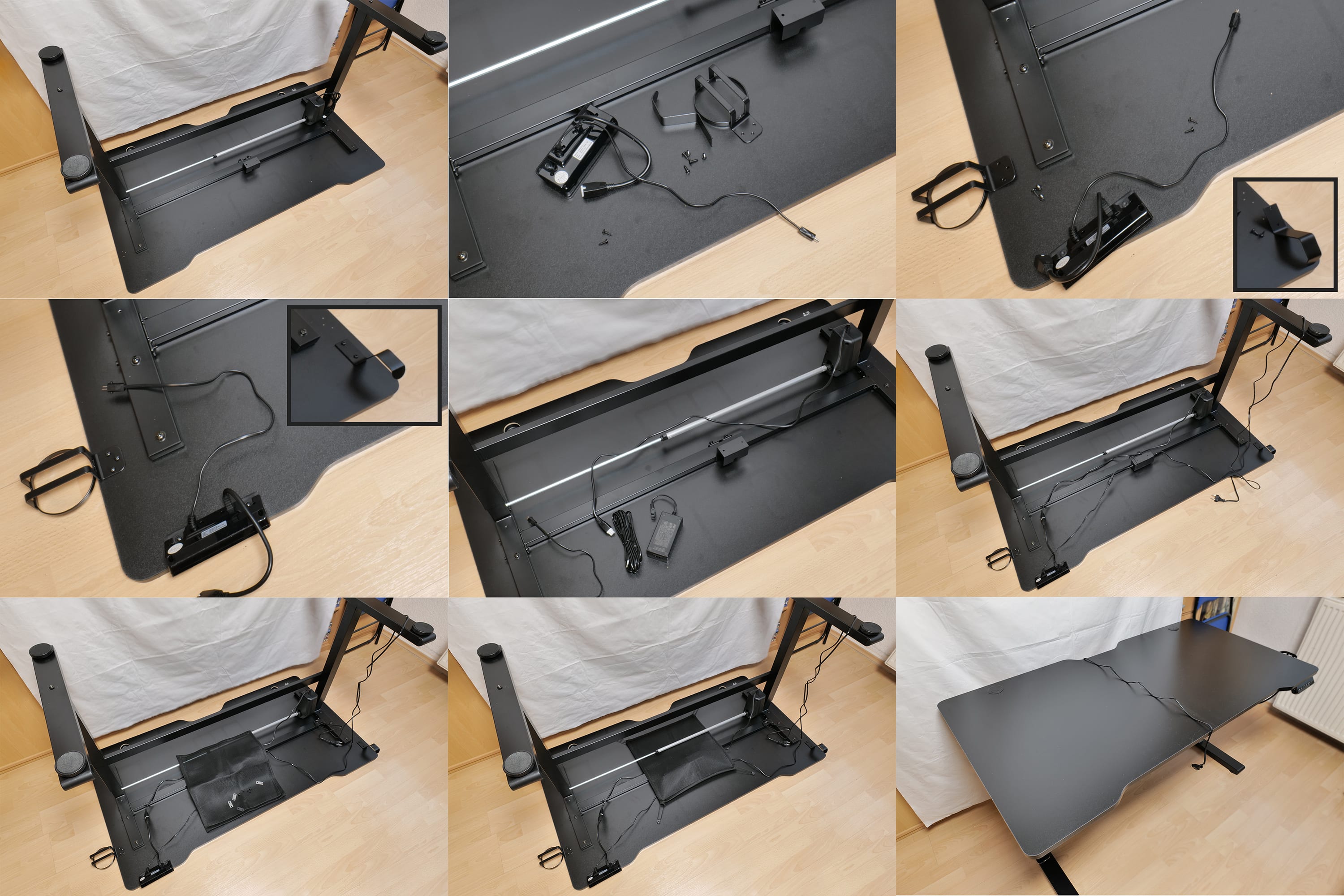 | Ausstattung: | Höhenverstellbar (elektrisch), Cup & Headset-Halter, Kabelmanagement-Löcher, Kabelmanagement-Netz. |