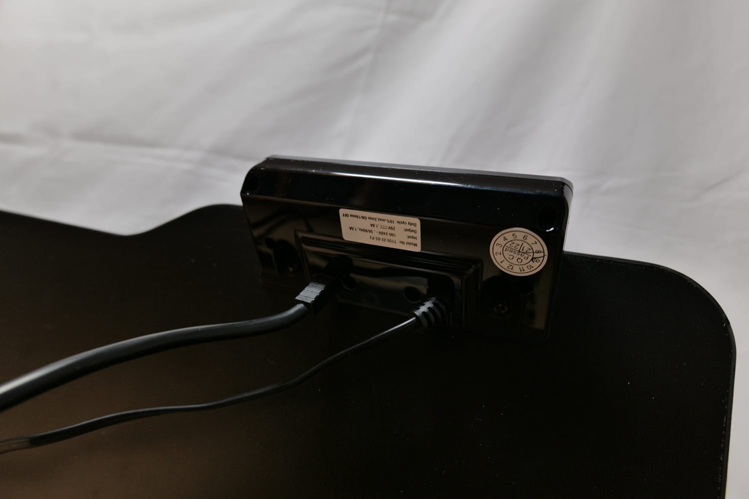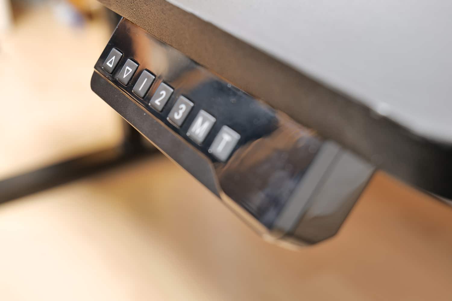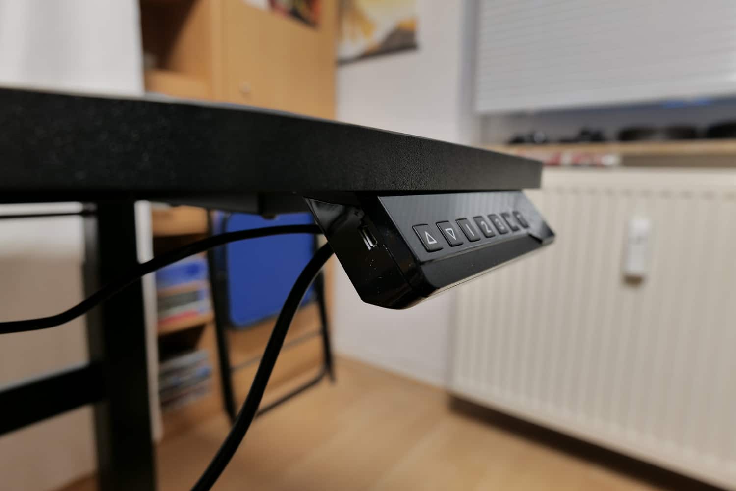 Die Bedienung der Höhenverstellbarkeit geschieht über ein kleines Panel, das über sieben Druckknöpfe, Micro-USB-Anschluss und digitale Höhenanzeige verfügt und unter der Tischplatte angebracht wird.