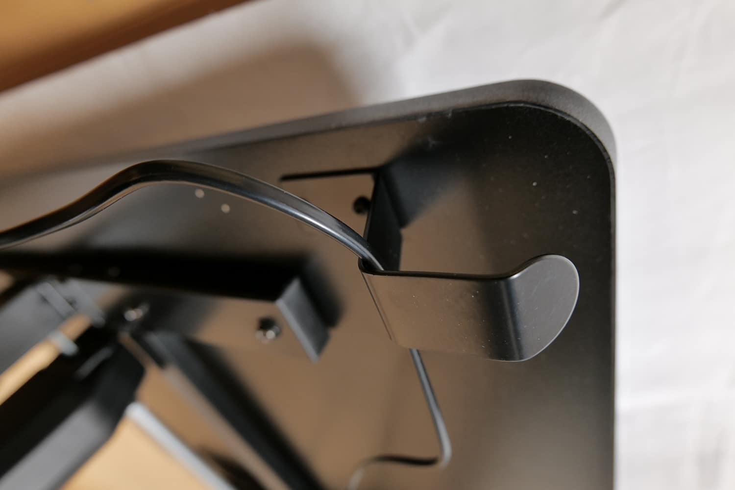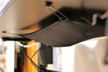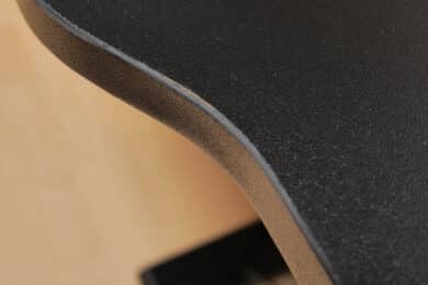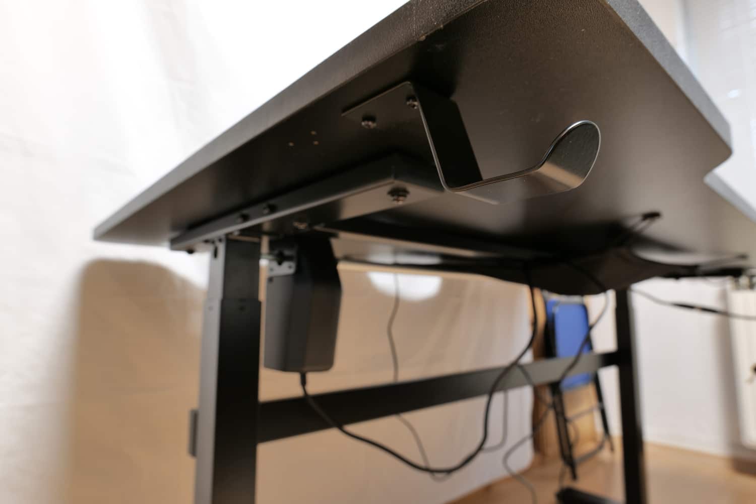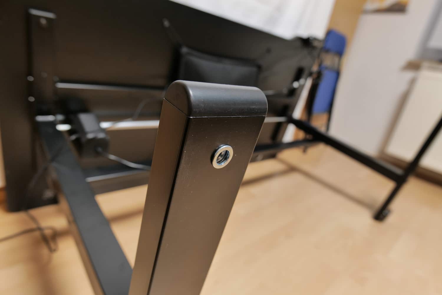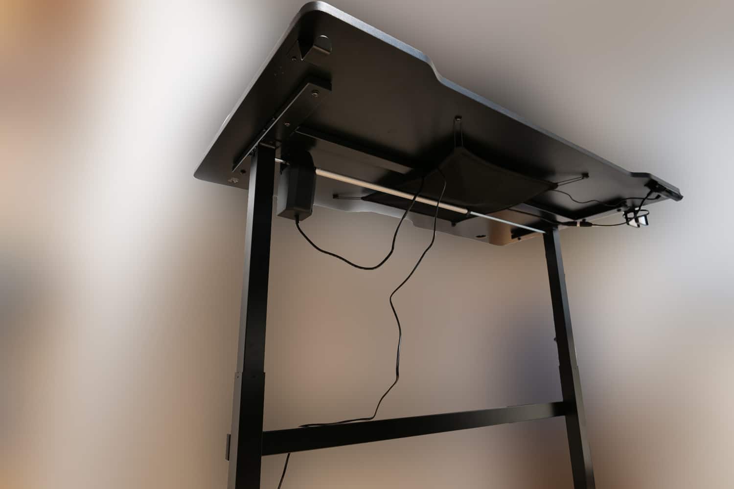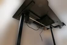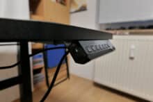 Zu den Schwächen gehören besonders das eher grundlegende Kabelmanagement und die eingeschränkte Ergonomie im Sitzen. Letztere wird durch den unteren Querträger verursacht, auf den viele vergleichbare höhenverstellbare Tische verzichten. Über kleinere Verarbeitungsmängel an der Tischplatte sehen wir aber hinweg.
