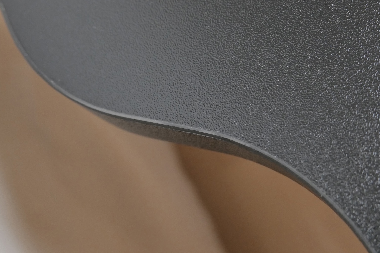 Wir haben jedoch auch einige unschöne Mängel an den verleimten Kanten der Tischplatte festgestellt, die zwar deren Funktion nicht einschränken, jedoch auch nicht gerade von einer hohen Sorgfalt bei ihrer Fertigung zeugen. Genau so verrichten die Kunststoff-Blenden der rückseitigen Löcher für das Kabelmanagement zwar ihren Zweck, fühlen sich ansonsten aber nicht sehr hochwertig an und springen bereits bei geringer Belastung, etwa durch Zug an einzelnen Kabeln, aus der Fassung.