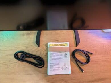 Allerdings fällt der Lieferumfang dafür recht überschaubar aus. Neben den obligatorischen Anleitungen finden sich lediglich ein Stromkabel, sowie ein USB-C- auf USB-C-Kabel im Lieferumfang. Das ist natürlich ganz praktisch für die Verwendung mit einem Notebook, in Verbindung mit einem Desktop-PC wird allerdings ein zusätzliches HDMI- oder DisplayPort-Kabel benötigt.