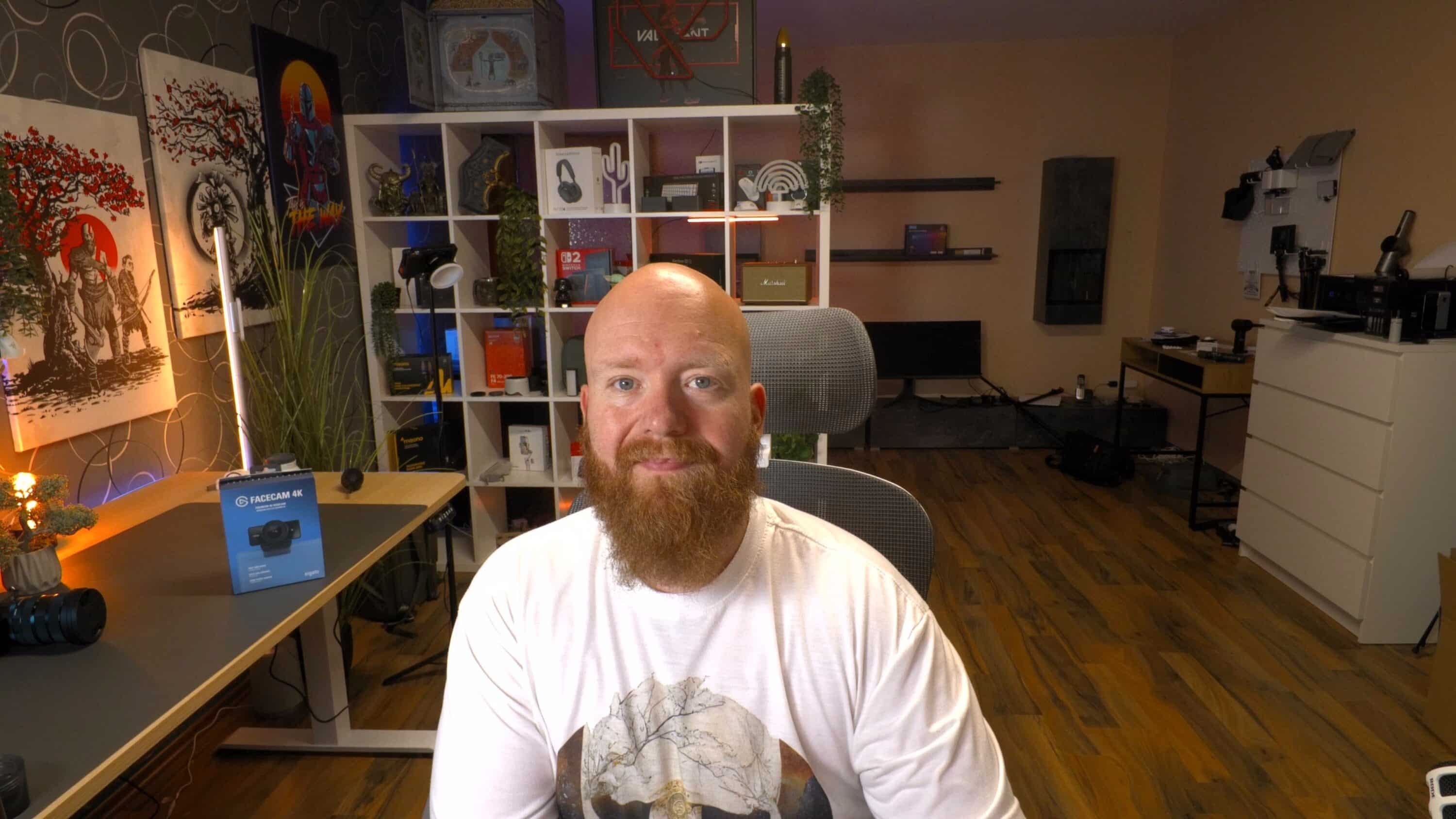 Allgemein gefällt mir die Bildqualität der Elgato Facecam 4K merklich besser. Auch, was die Schärfe und den Detailgrad anbelangt. Bildrauschen im Hintergrund ist dabei zweifellos erkennbar und das etwas stärker als bei anderen 4K-Webcams, Objekte und Personen sind aber deutlich klarer zu erkennen.