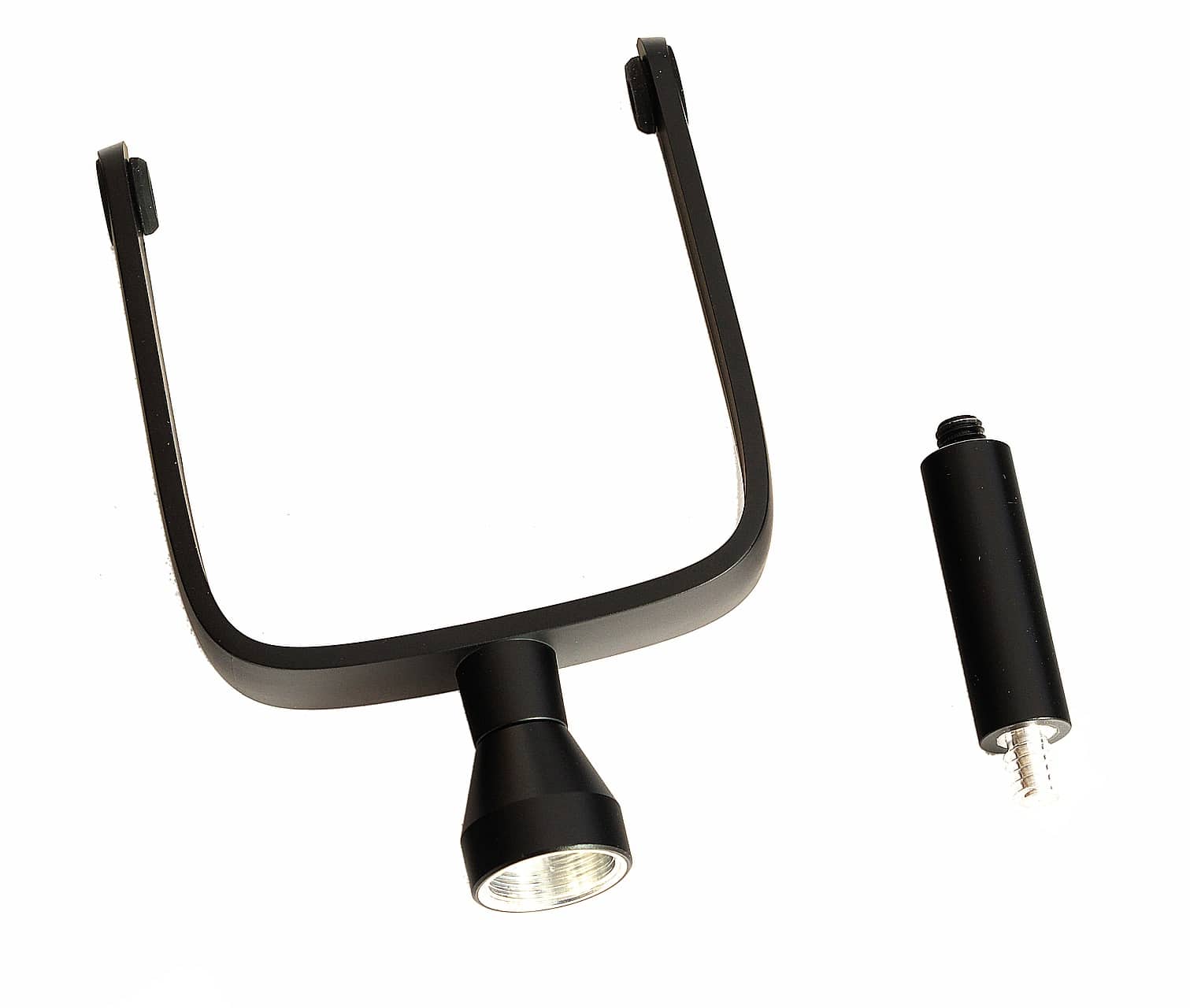 Zur Montage an einem Mikrofonarm muss der mitgelieferte Ständer in der Mitte auseinander geschraubt werden. Anschließend kann man den Adapter befestigen und den Arm mitsamt dem Mikrofon an einem Stativ mit wahlweise 3/8″- oder 5/8″-Gewinde festschrauben.