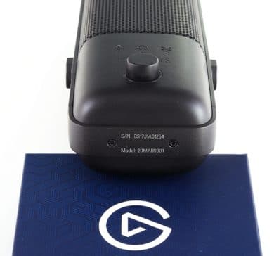 Als Bedienelement ist am Wave:3 lediglich ein Drehknopf untergebracht, mit dem die Lautstärke eingestellt werden kann. Dafür gibt es drei unterschiedliche Modi, die durch ein Drücken des Knopfs gewechselt werden. Je nachdem beeinflusst man die Aufnahmelautstärke selbst, die Lautstärke des Kopfhörerausgangs oder das Lautstärkeverhältnis, in dem der Kopfhörerausgang PC-Klänge und das aufgenommene Signal ausgeben soll.