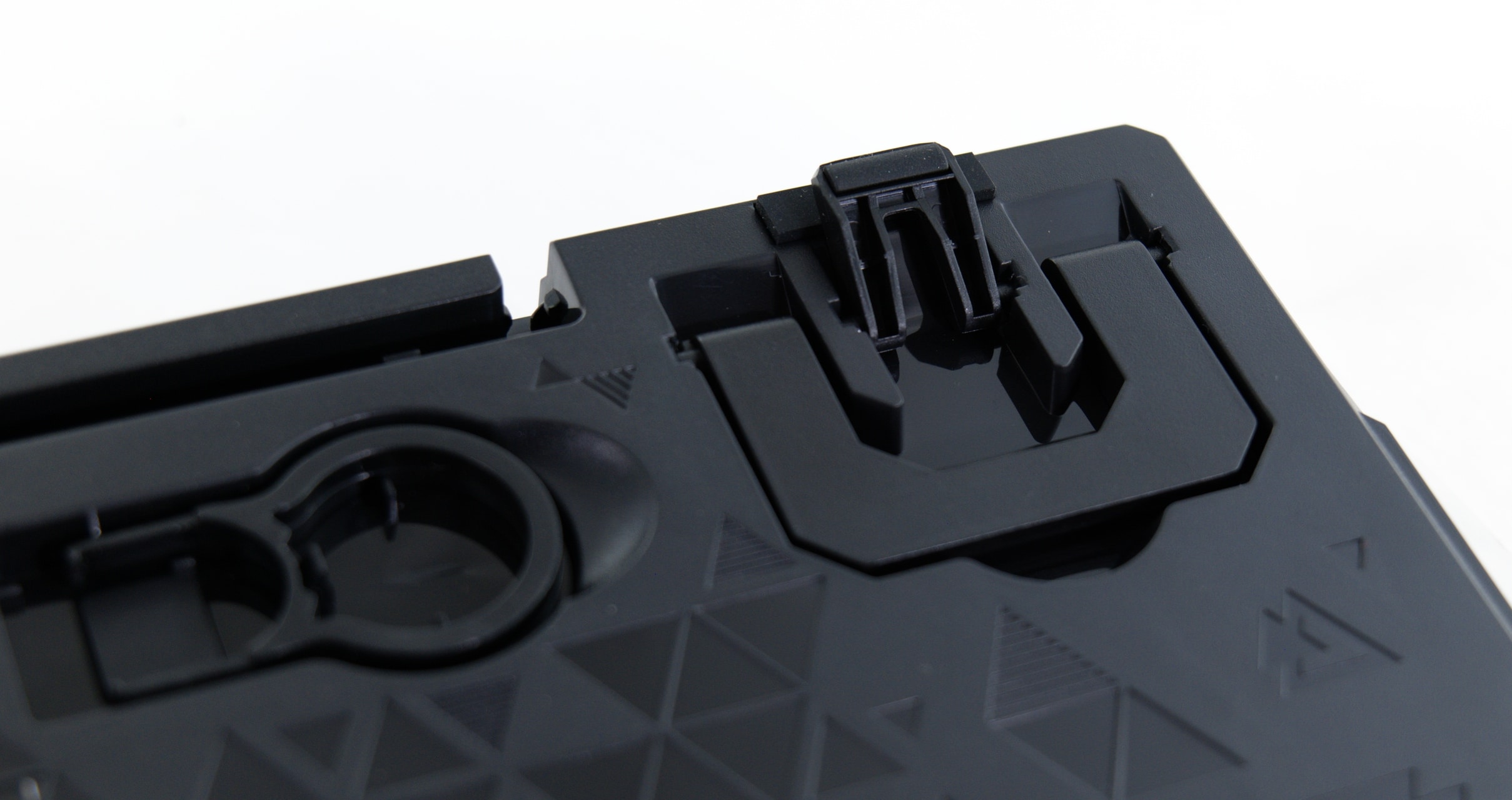 Auffällig ist zudem auch die Unterseite der Tastatur, auch wenn diese im Betrieb natürlich nicht zu sehen ist. Dort setzt der Hersteller auf ein Muster mit geriffelten und hochglänzenden Elementen. Außerdem sind dort die üblichen Gummistreifen sowie die gummierten Standfüße untergebracht. Die Endorfy Thock Pudding kann dabei zweistufig verstellt werden, was zusätzliche Flexibilität bietet. Dasselbe gilt zudem für den integrierten Kabelkanal, mit dem man das USB-Kabel an der Rückseite wahlweise mittig, links oder rechts herausführen kann. Hier bietet Endorfy somit das volle Paket, das durch den sinnvoll integrierten Tastenentferner noch abgerundet wird.