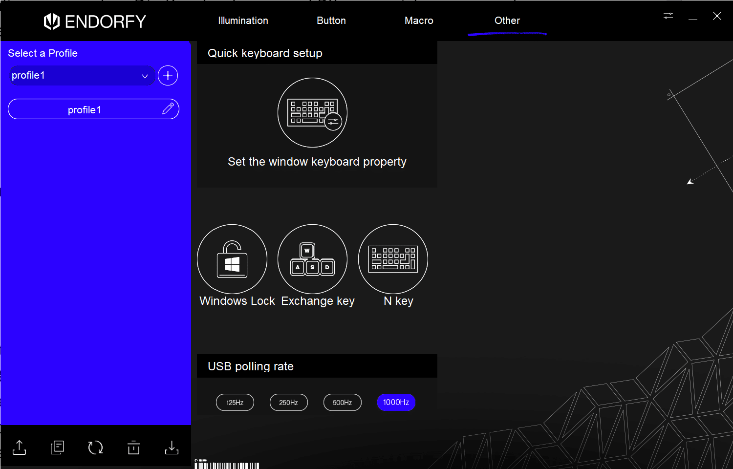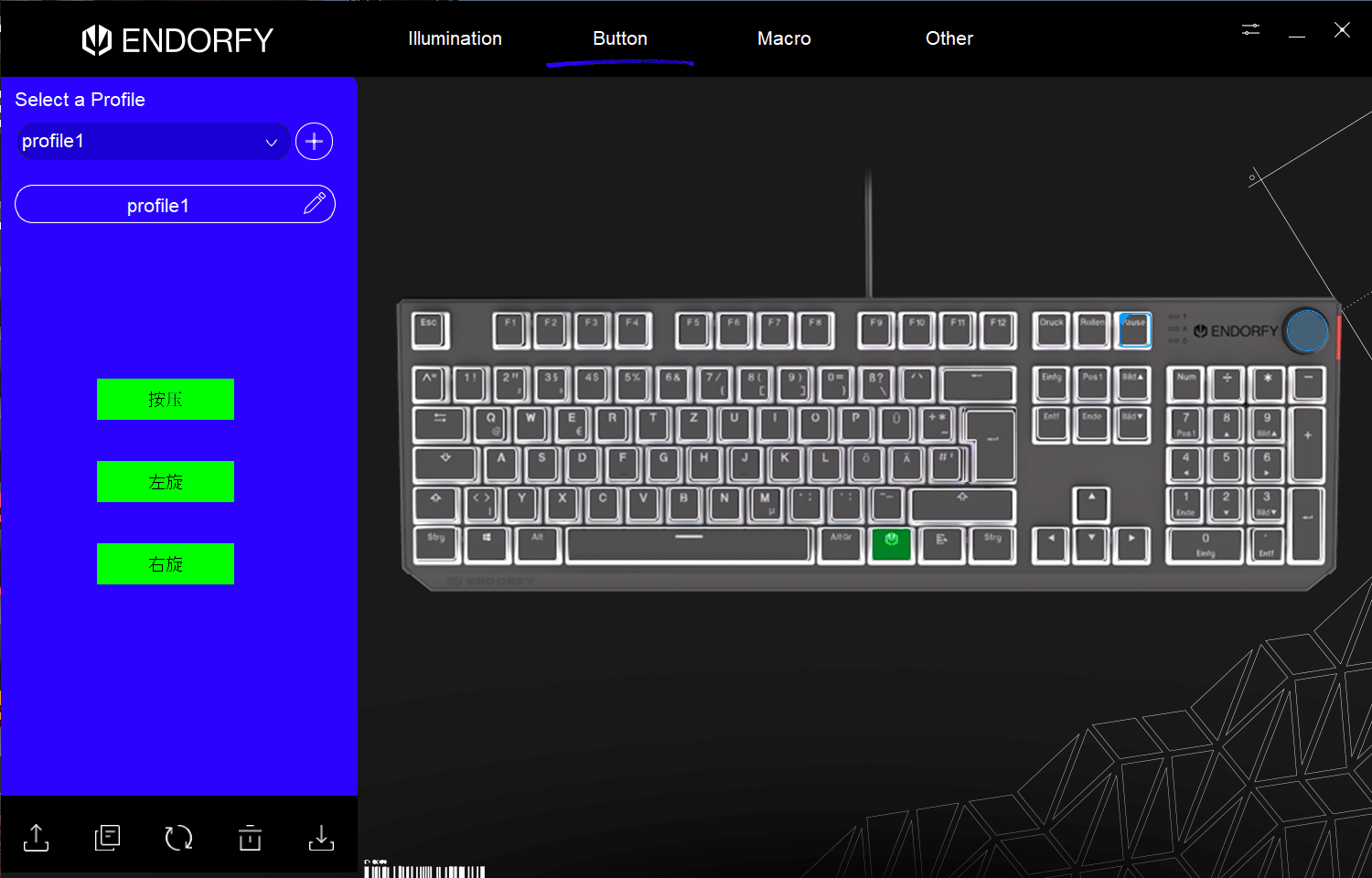Wie üblich bietet auch Endorfy für die eigenen Tastaturen eine Software an, die schlicht „Endorfy Wired Keyboards“ genannt wird. Ebendiese kann man über das Netz herunterladen und schnell sowie ohne Registrierungszwang installieren. Anschließend kann man die Thock Pudding mit dem Programm konfigurieren, wobei viele übliche Funktionen bereitgestellt werden.