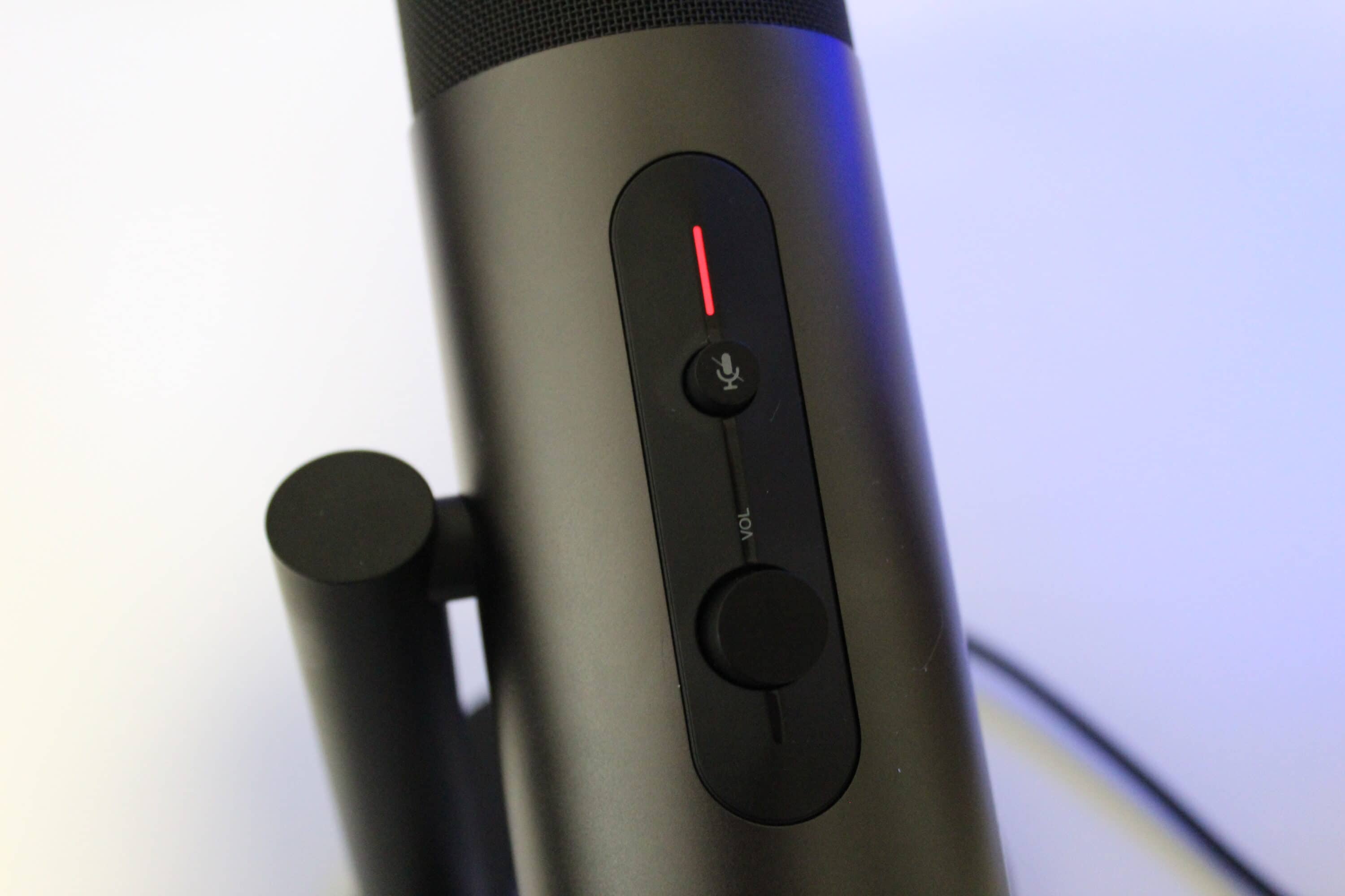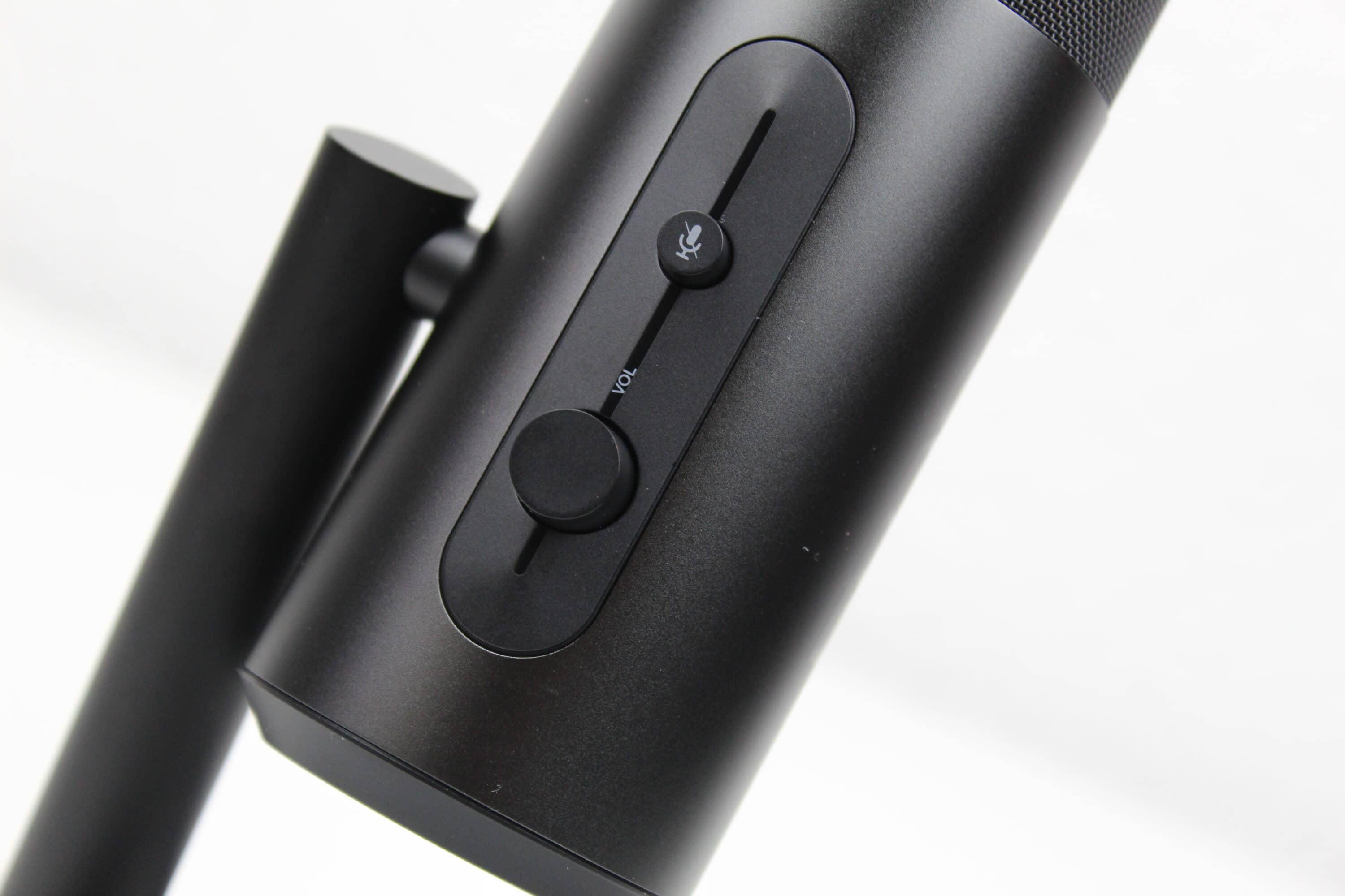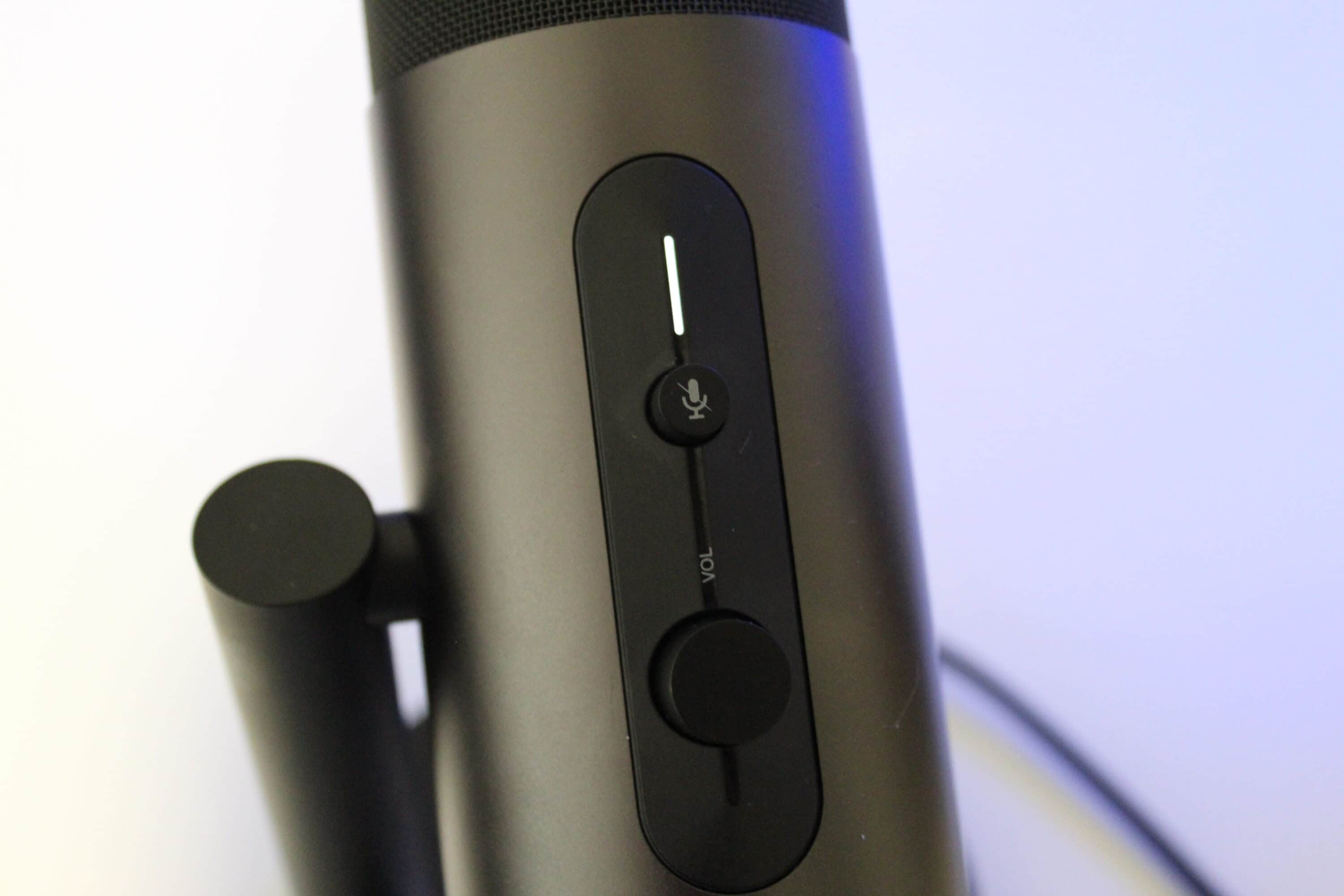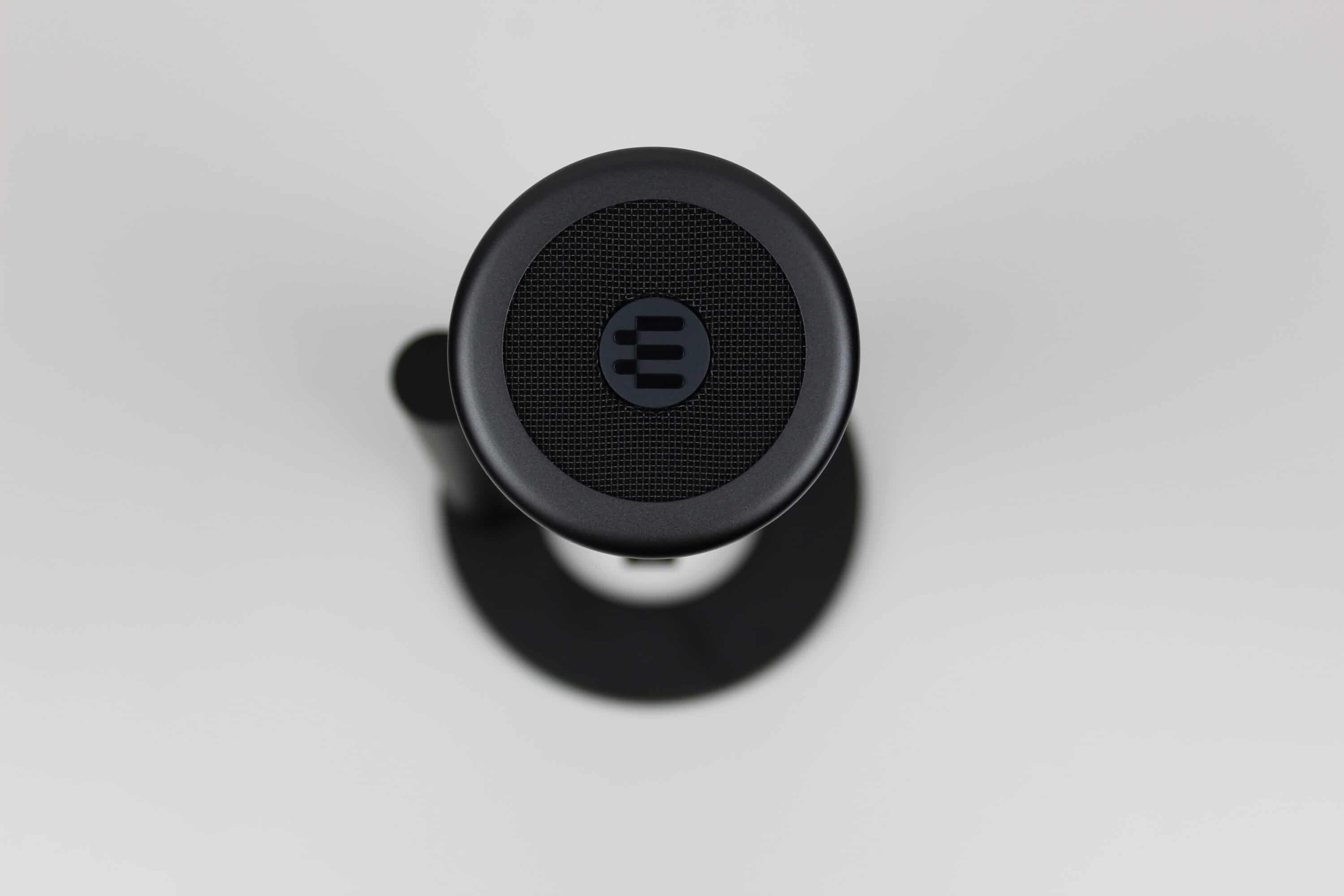 Das Mikrofon ist optisch recht schlicht gehalten. In einem leicht glänzenden, dunkelgrauen Korpus sind Knöpfe zur Stummschaltung, Gain-Pegel, Lautstärke-Pegel und die Mikrofoncharakteristik eingelassen. Das eigentliche Mikrofon liegt oben hinter einem Gitter, von oben ist das EPOS-Logo zu sehen. Auffällig ist das geringe Gewicht, die Verarbeitung wirkt jedoch durchweg überdurchschnittlich. Die Knöpfe lassen sich angenehm drehen bzw. drücken, optische Mängel sind nicht vorhanden, das Material fühlt sich wertig an. Über dem Mute-Knopf ist eine kleine LED-Leiste, bei normaler Nutzung leuchtet diese weiß, sobald stumm geschaltet wird, ist hier ein rotes Leuchten zu sehen.
