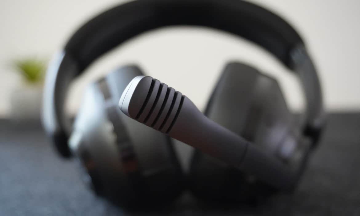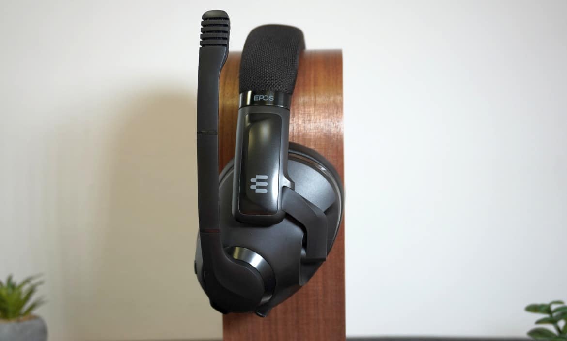 Wo das EPOS-Headset im Vergleich zum Corsair-Pendant allerdings die Nase vorn hat (und zwar deutlich), ist bei der Qualität des Mikrofons. Positiv fällt zunächst auf, dass der Mikrofonarm relativ schwergängig ist – was für sicheren Halt sorgt. Selbst bei schnellen Bewegungen bleibt der Arm stets in Position.