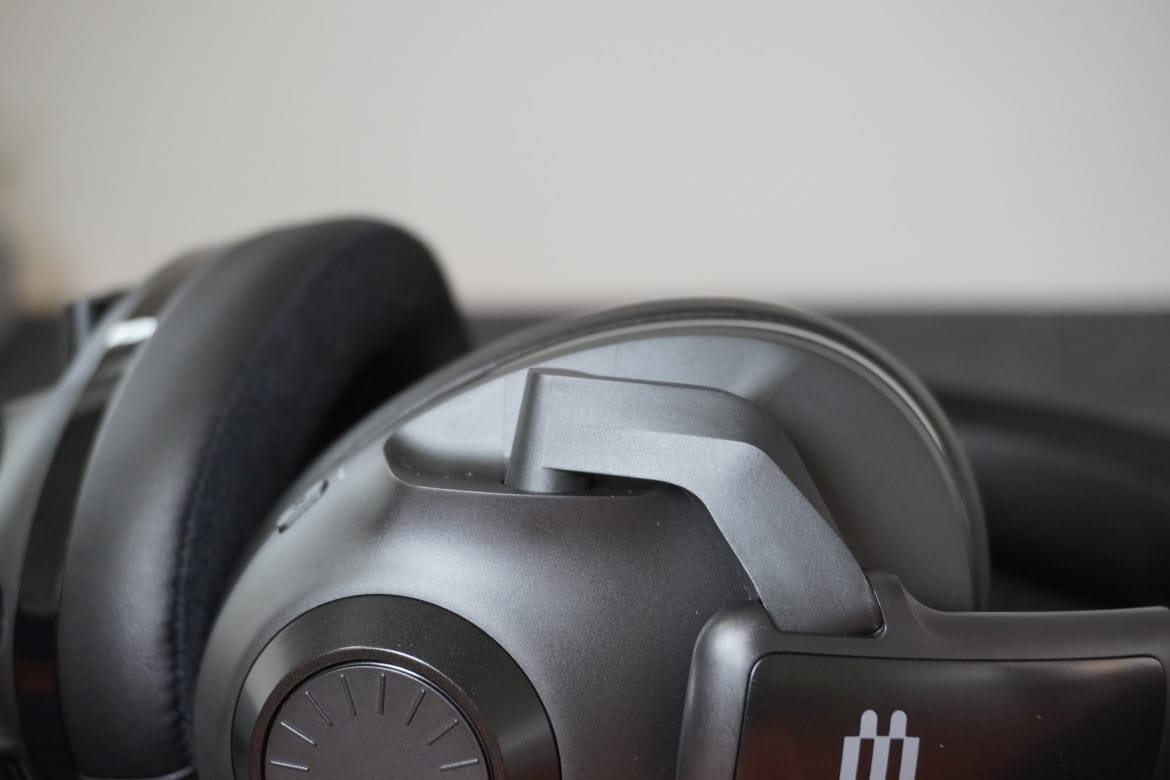 Die Ohrpolster sind zudem problemlos abnehmbar und können so ausgetauscht werden. Mithilfe des praktischen Klick-Mechanismus werden sie dann wieder sicher mit dem Headset verbunden. Zum Feinjustieren dient ein Metallbügel mit spürbarer Rasterung in 10 Stufen, der sich hochwertig und stabil anfühlt.